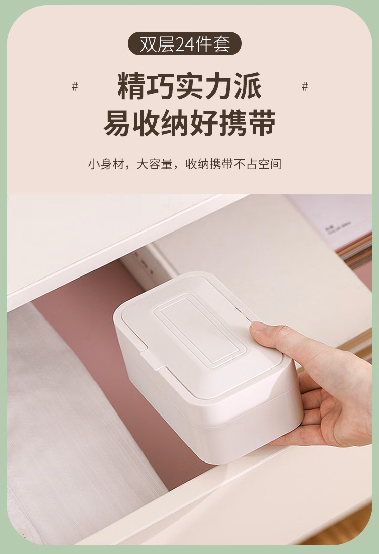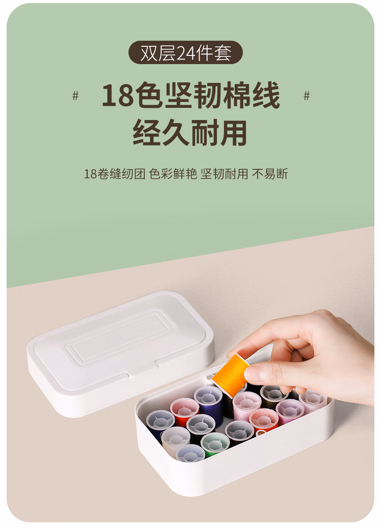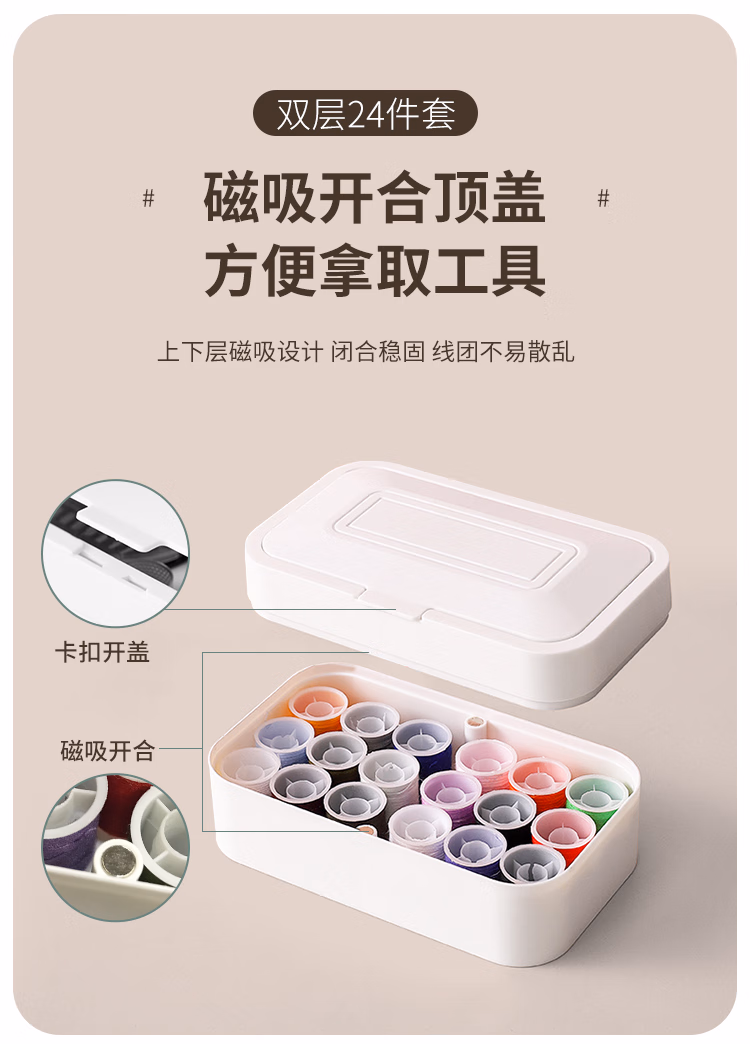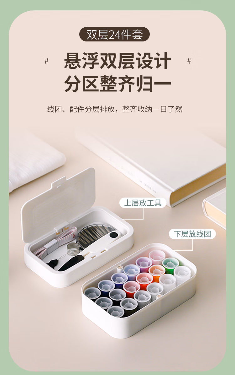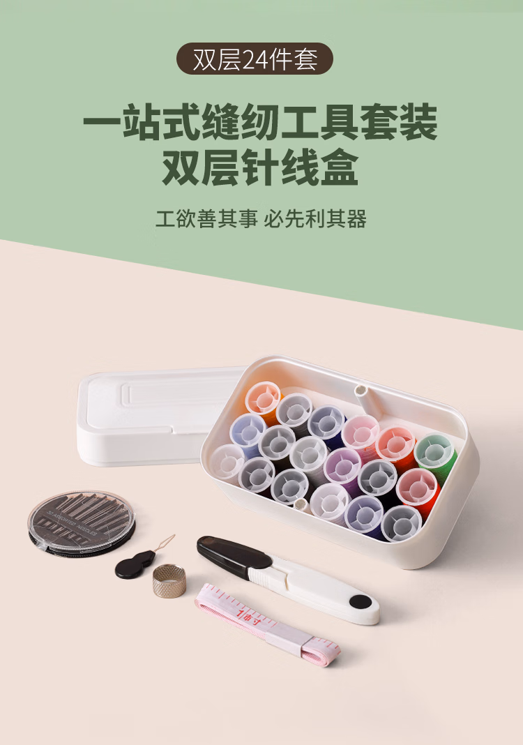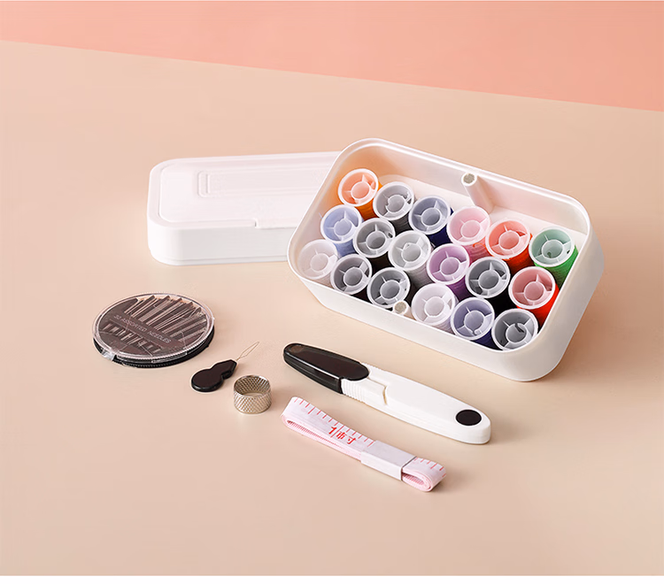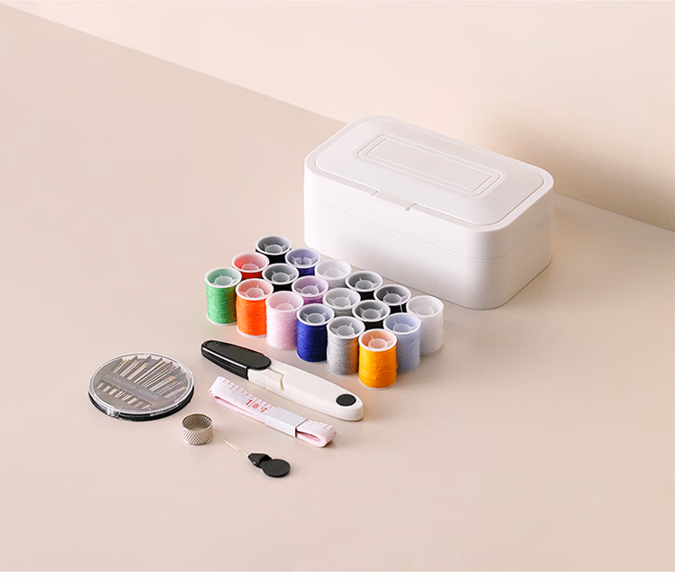班哲尼家用针线盒套装宿舍手工收纳针线包旅游用品多用途便携缝纫缝补工具盒收纳包 24件套纯白色