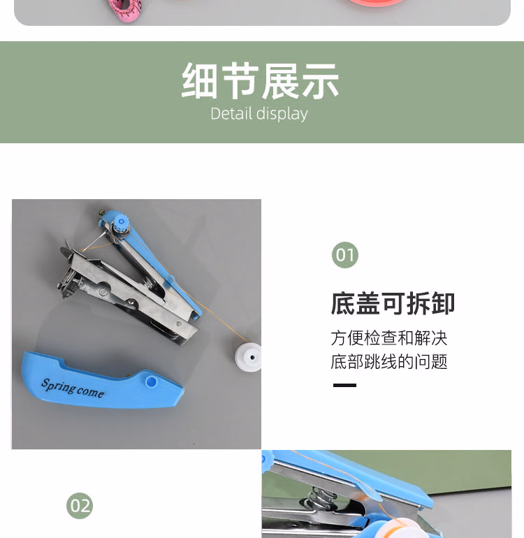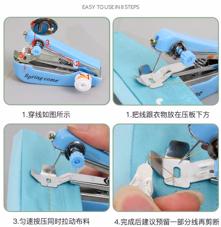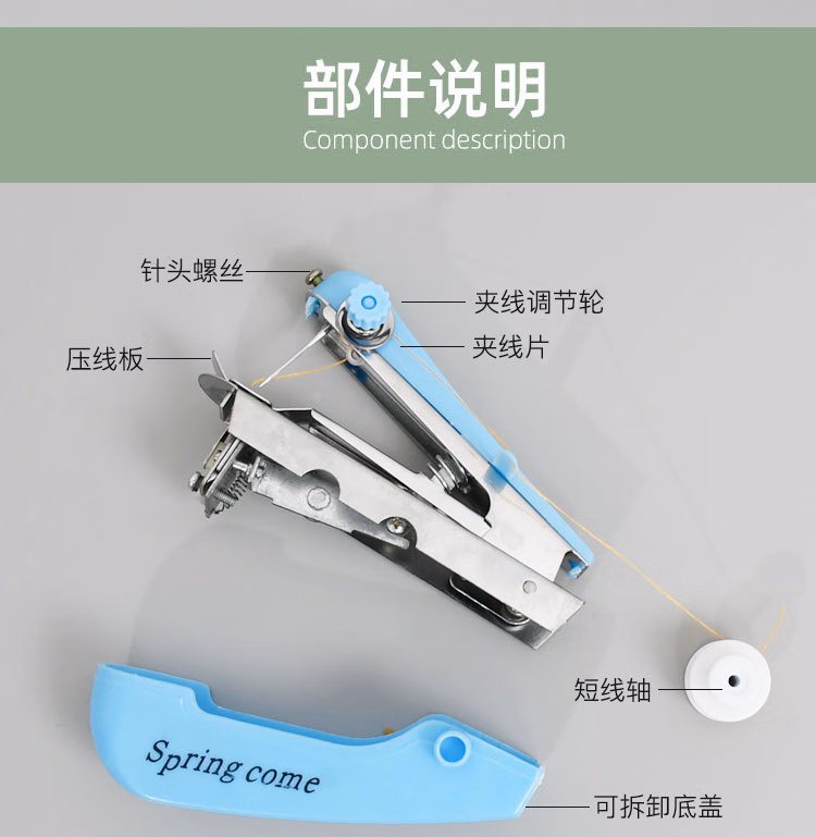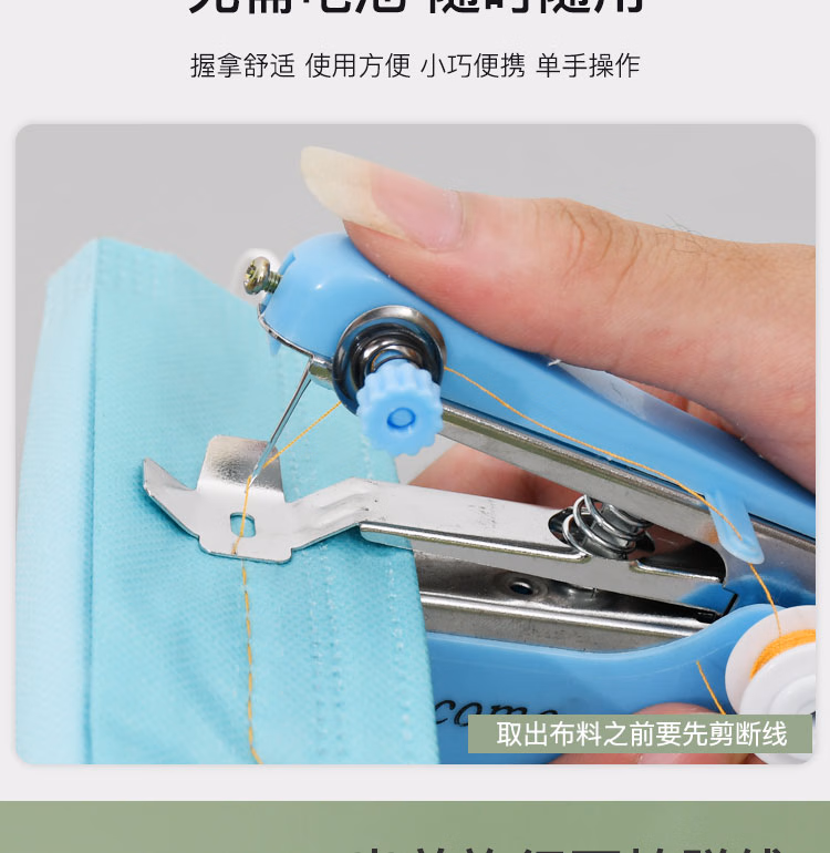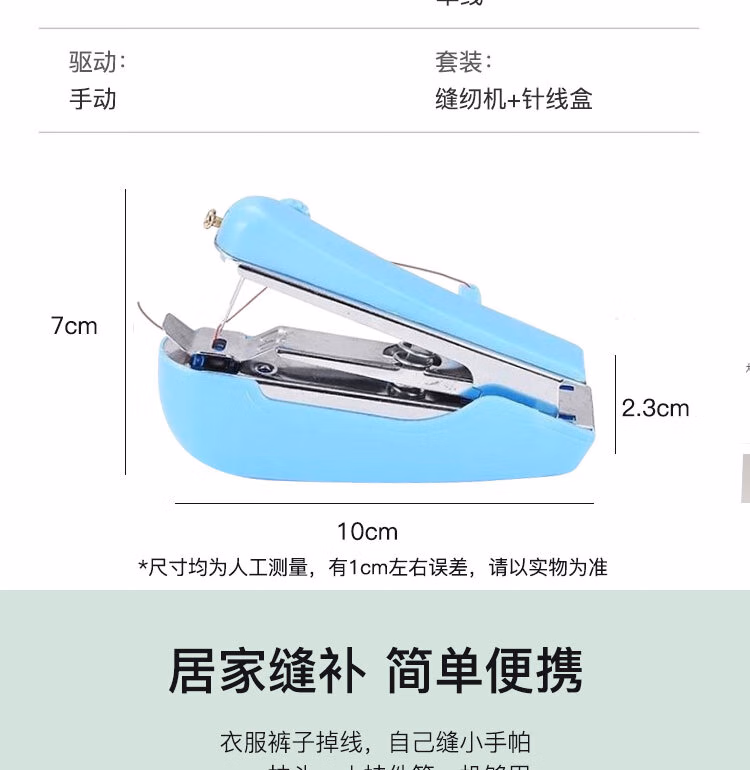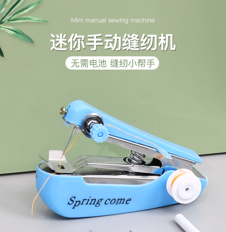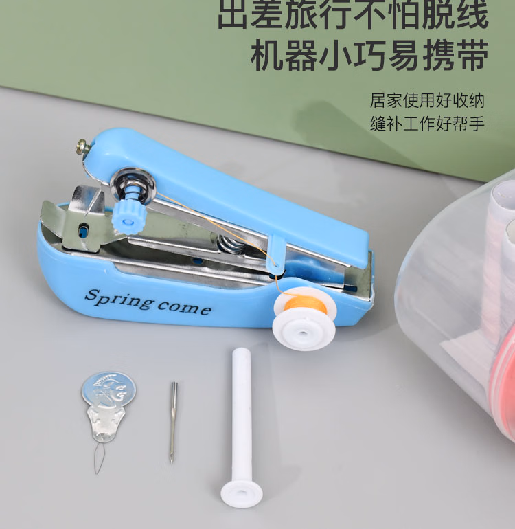 茨格曼手动缝纫机迷你全自动手持便携式家用小袖珍型加强版缝衣机针线盒15件套缝纫机套装颜色随机
