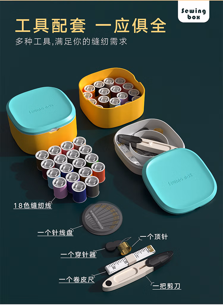 妙馨思家用多功能针线盒套装手工收纳缝衣针便携缝纫针线包缝补衣服被子绣花针手缝针穿针神器小钩针线活工具