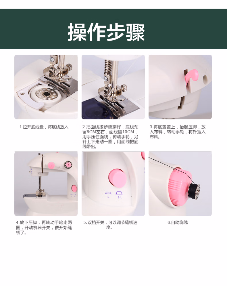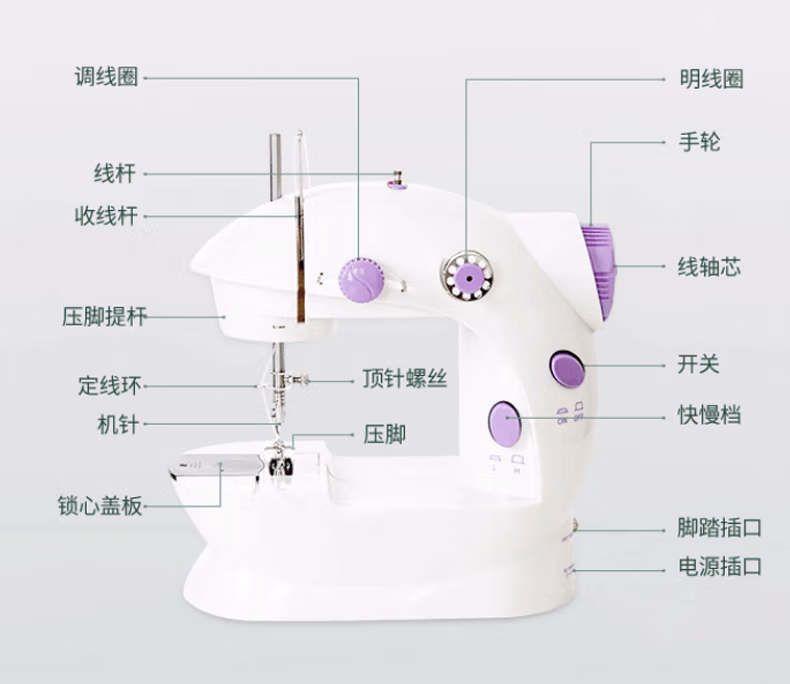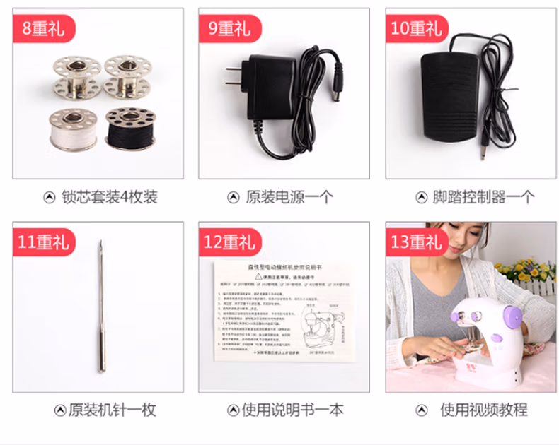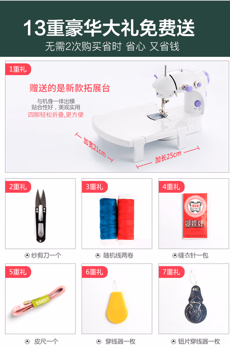迪普尔迷你缝纫机家用 电动小型缝纫机迷你吃厚微型便携式车衣台式手动脚踏配件压脚新手老手通用 缝纫机机台【贈针线盒 拓展台】