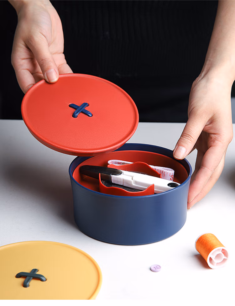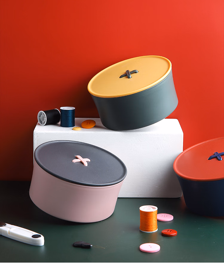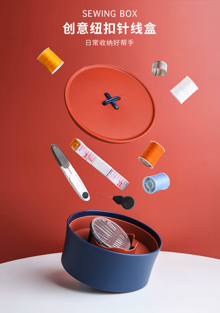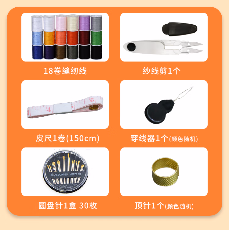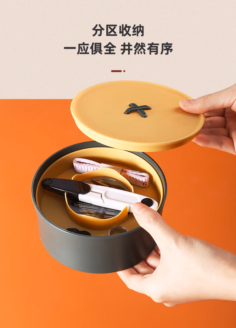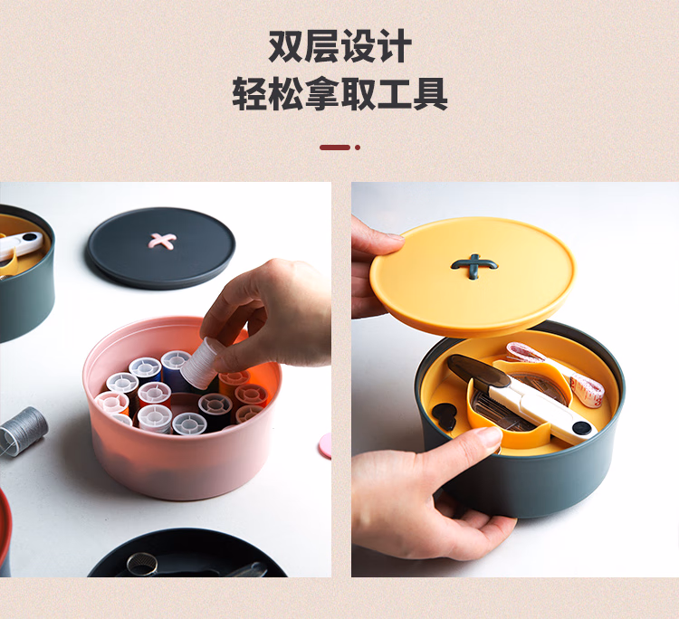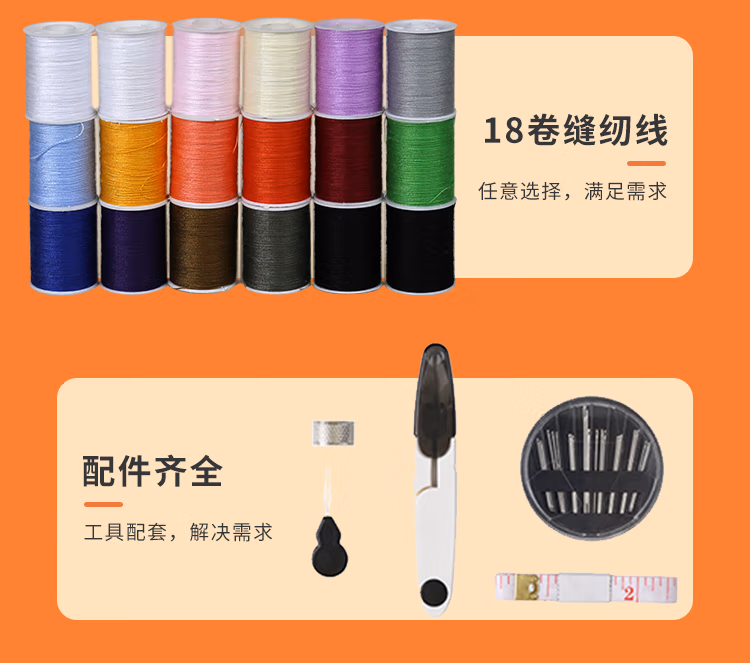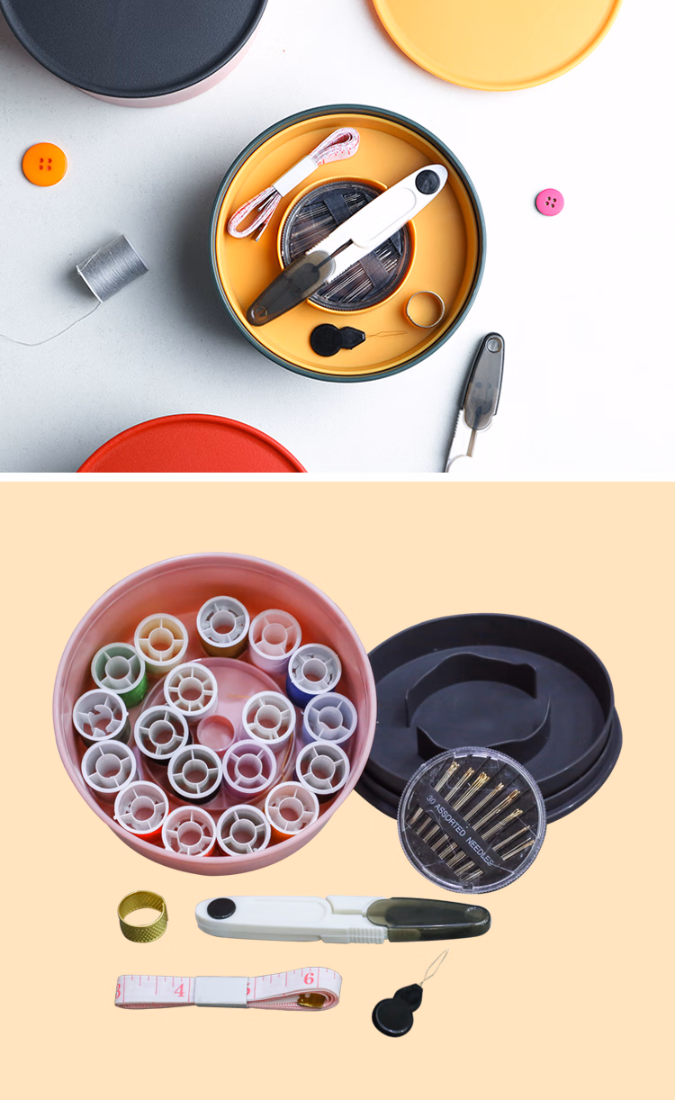 班哲尼家用针线盒套装手工收纳针线包旅游用品多用途便携缝纫缝补工具盒收纳包 24件套灰粉色