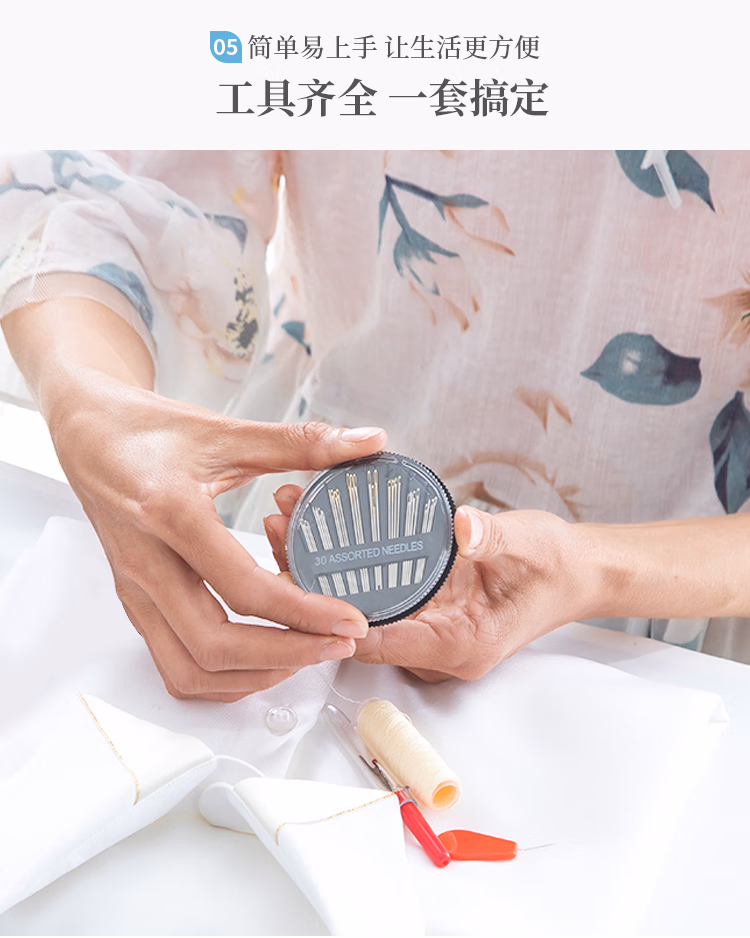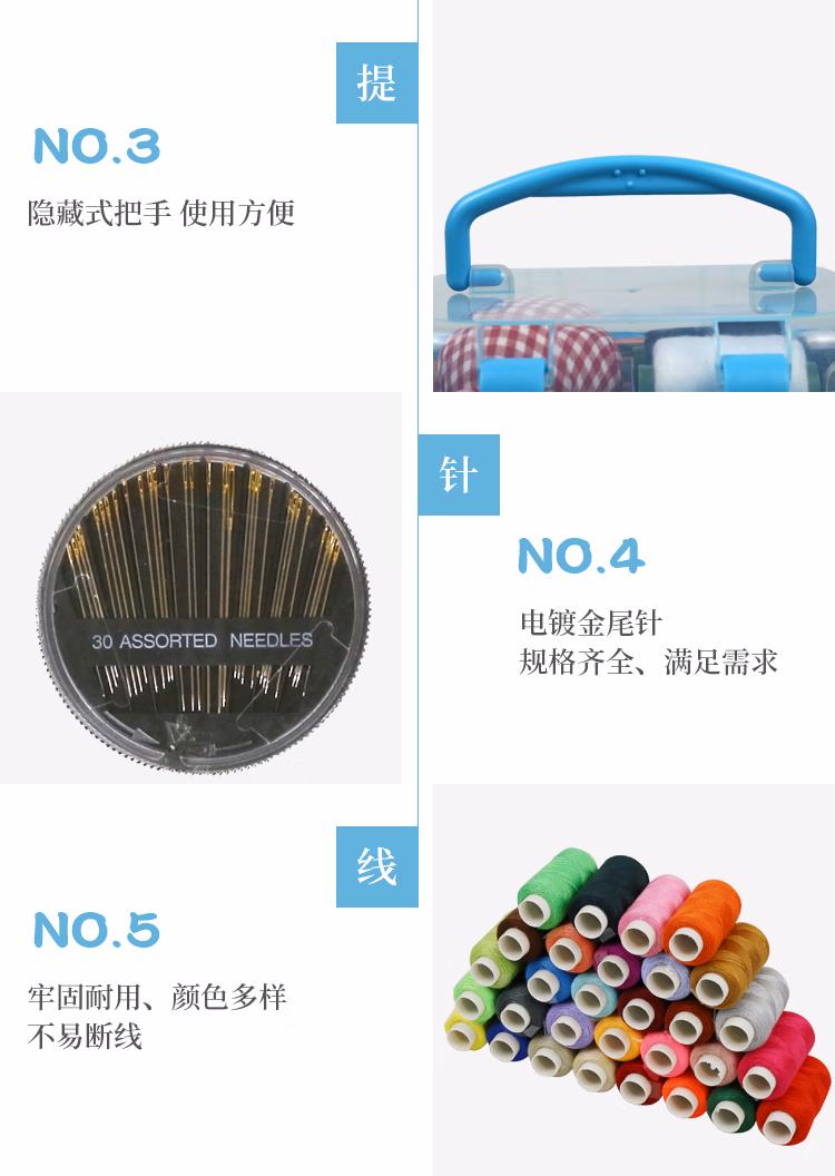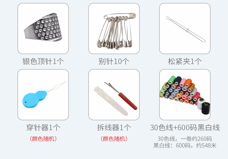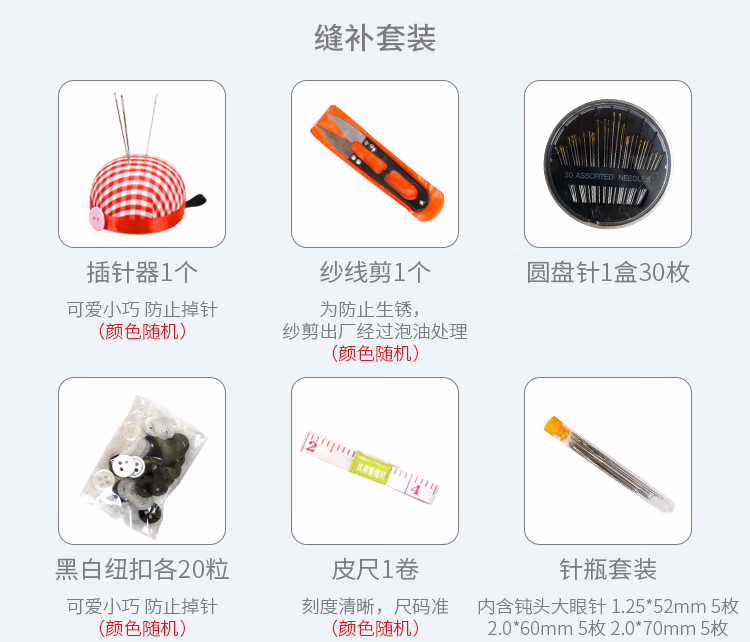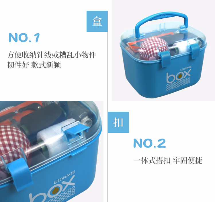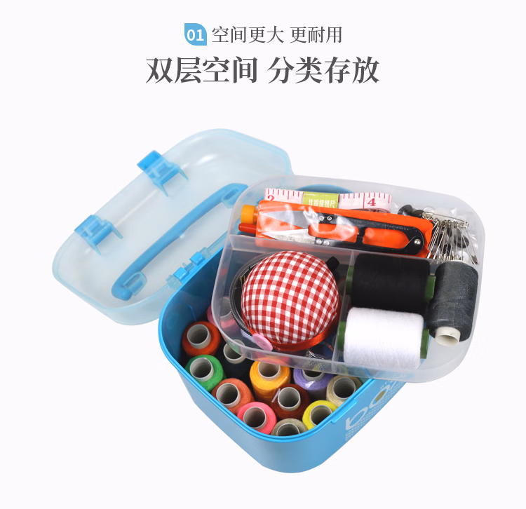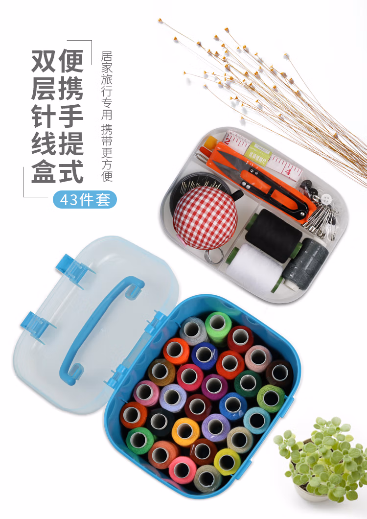 班哲尼针线盒套装家用宿舍针线包多用途旅行便携缝纫缝补工具套装方形针线盒收纳盒 43件套