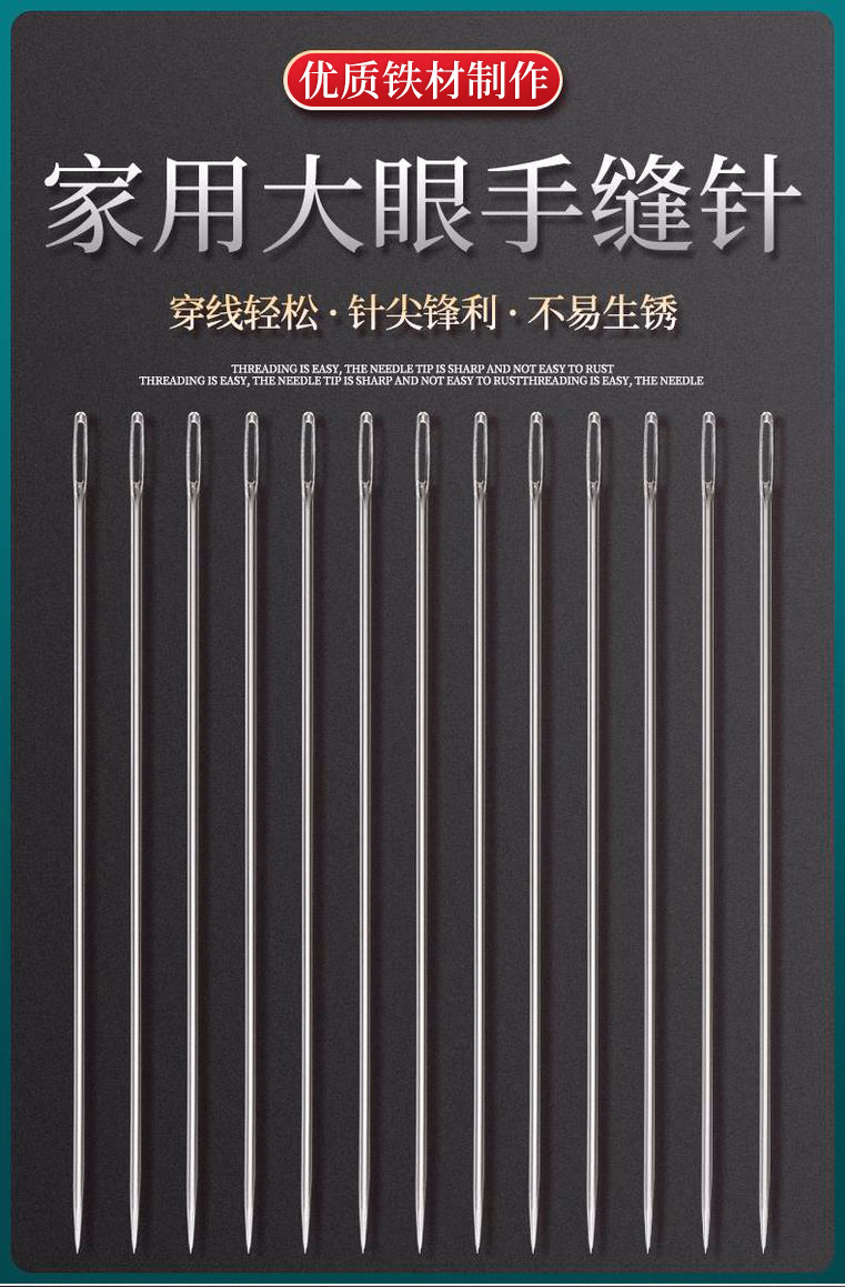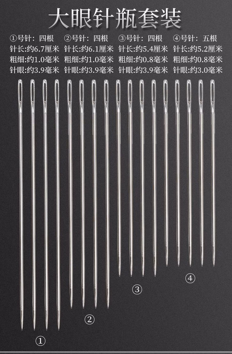 登比针线盒家用大眼大号针手工缝被子针家用大孔缝衣服针线免穿线手缝针盲人针细 大眼针混装 17枚