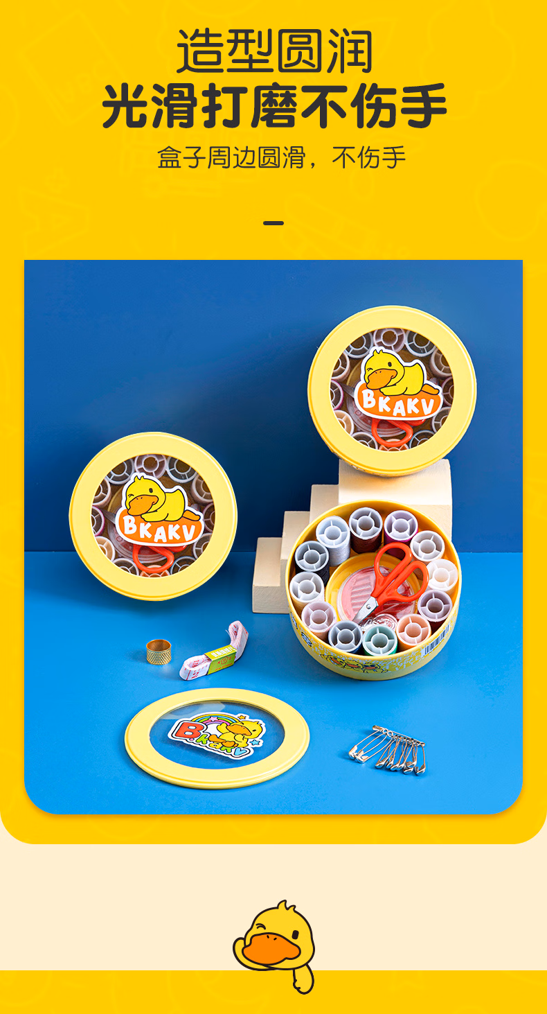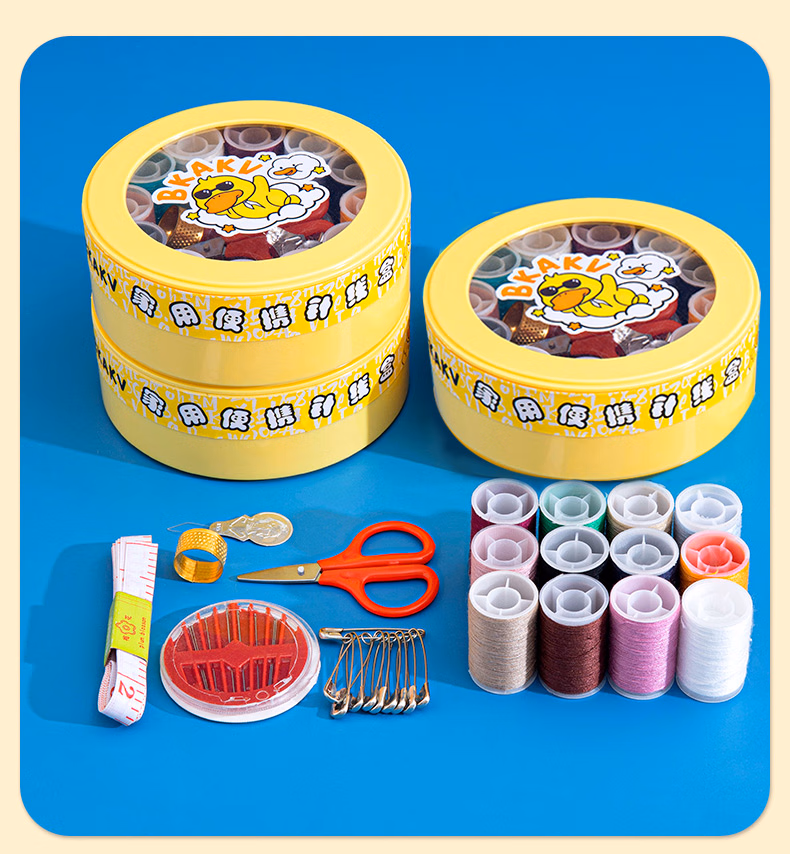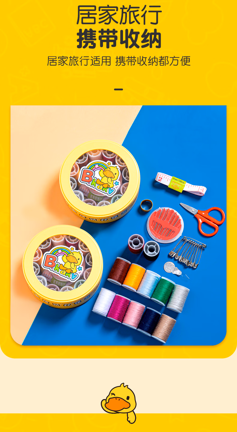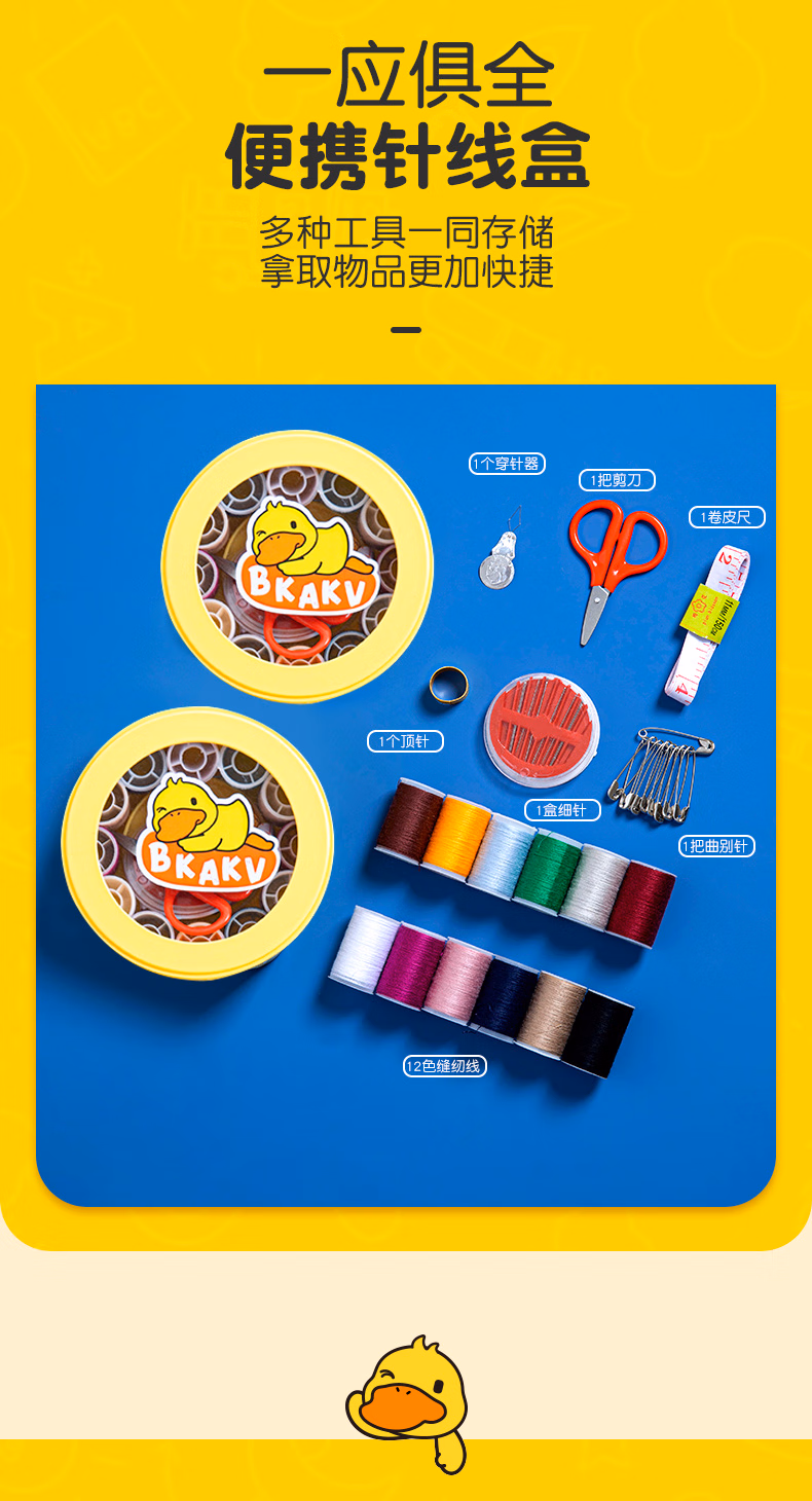 皓梵洁针线盒套装便携针线包家用宿舍多功能旅行缝衣线高档缝纫缝补工具收纳盒 小黄鸭系列 18件套