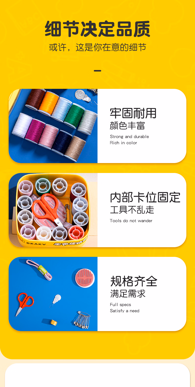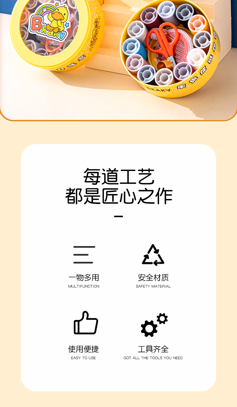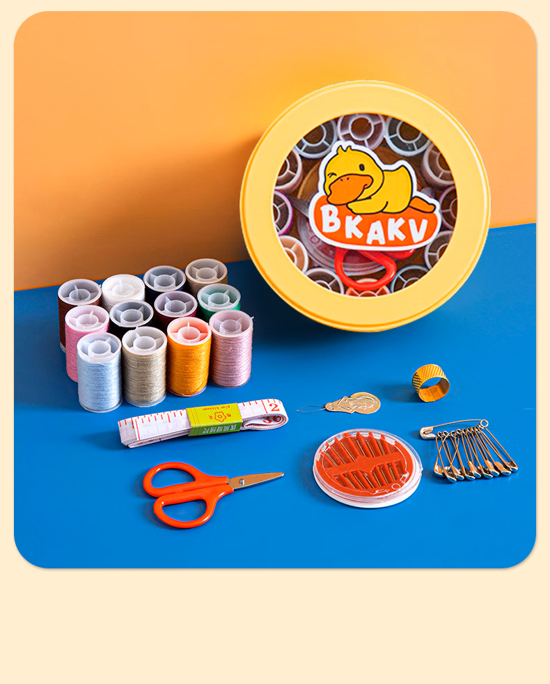 皓梵洁针线盒套装便携针线包家用宿舍多功能旅行缝衣线高档缝纫缝补工具收纳盒 小黄鸭系列 18件套