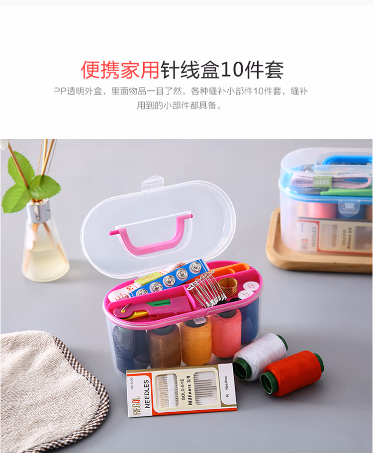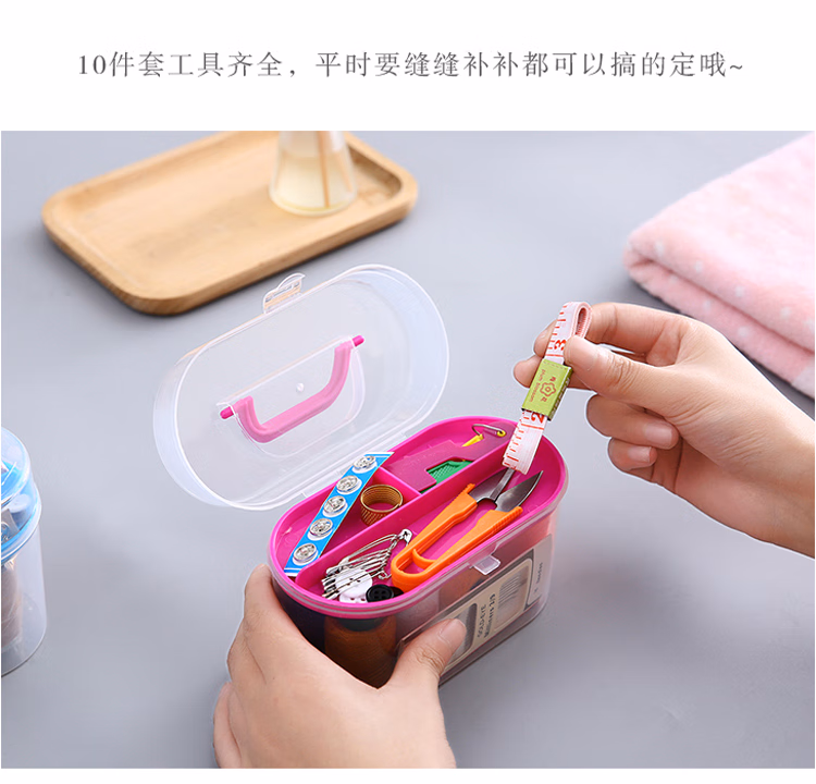欣沁针线盒套装 旅游用品多用途便携缝纫缝补工具盒收纳包 颜色随机