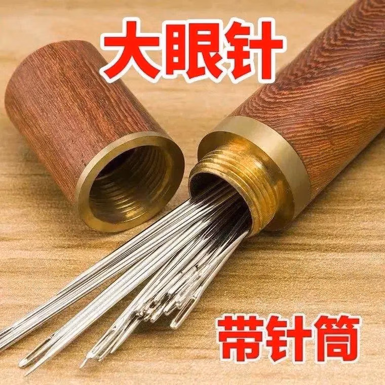 【全套32根】大眼针手缝针老人针家用大眼细长传统手工缝衣缝被子木筒针线盒家用32根 檀木桶装 顶针 侧穿针-6个尺寸混合装