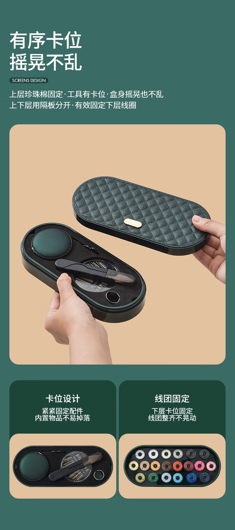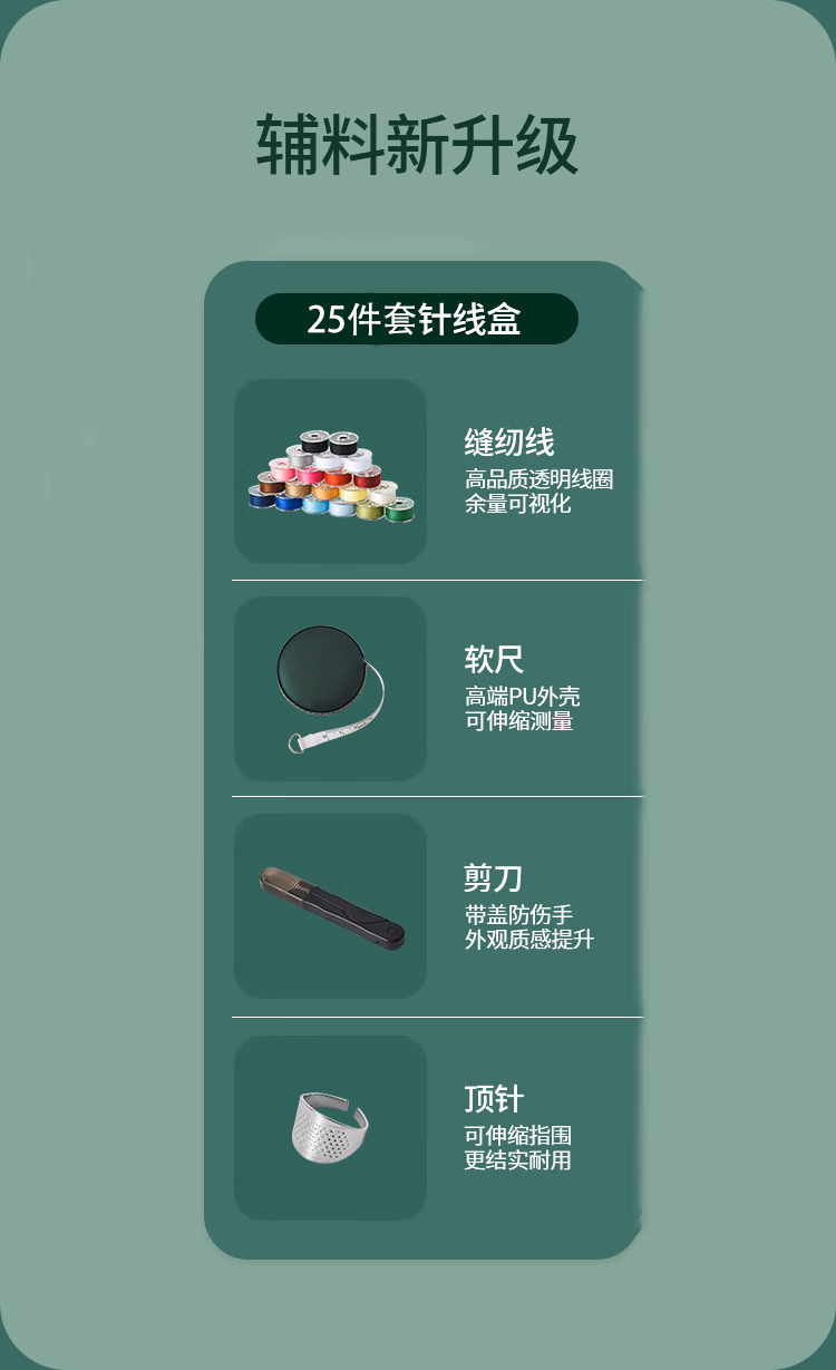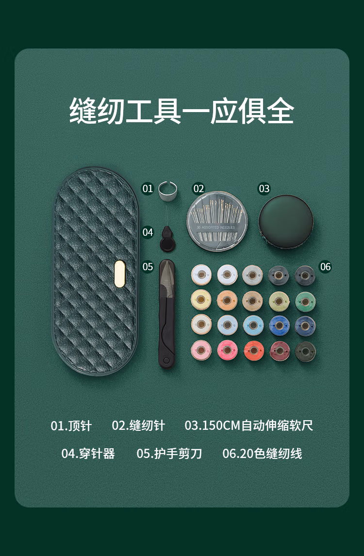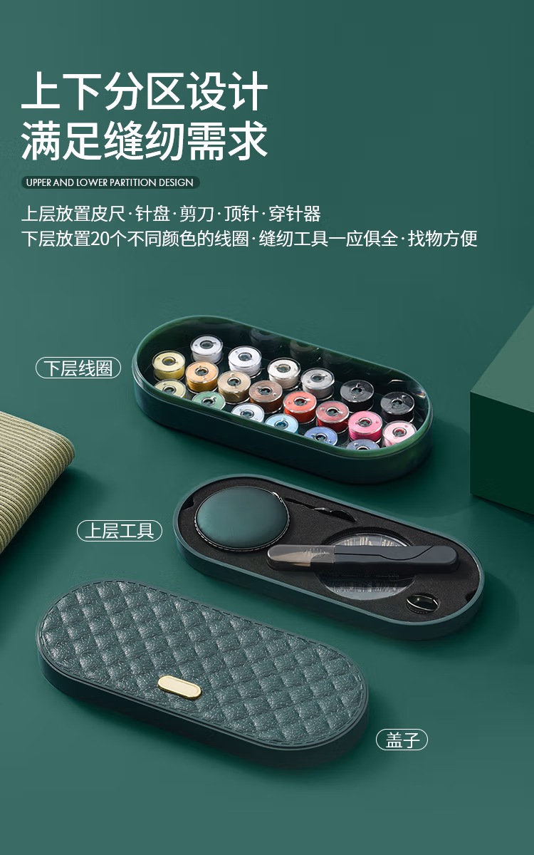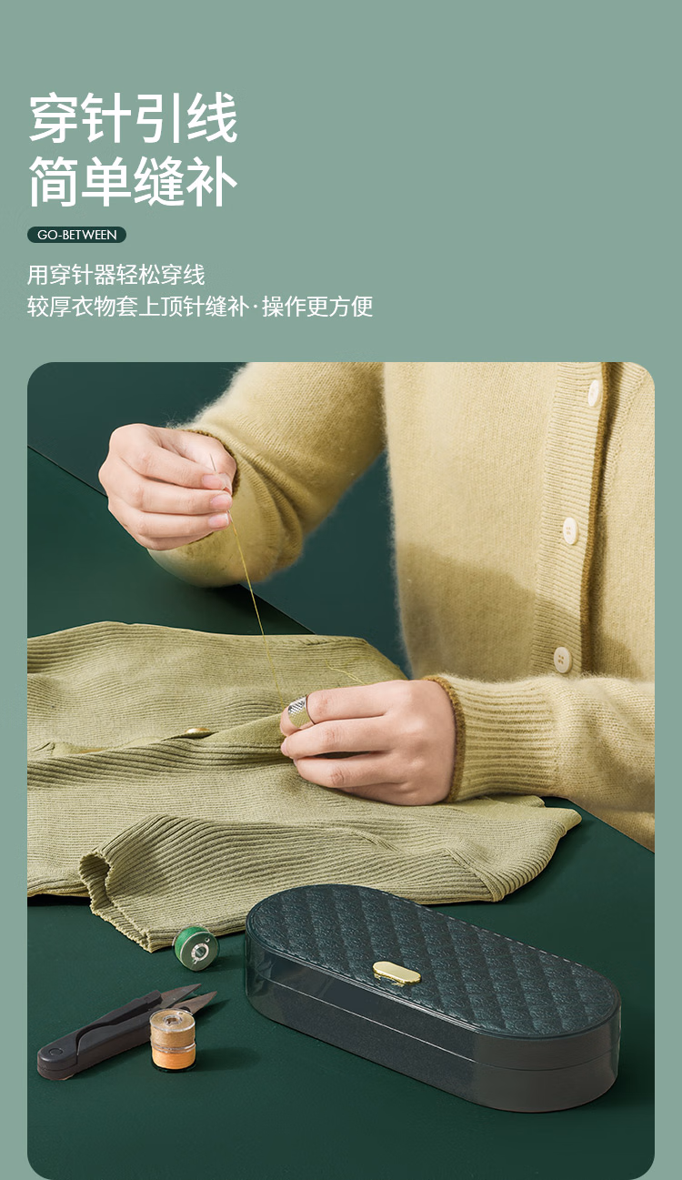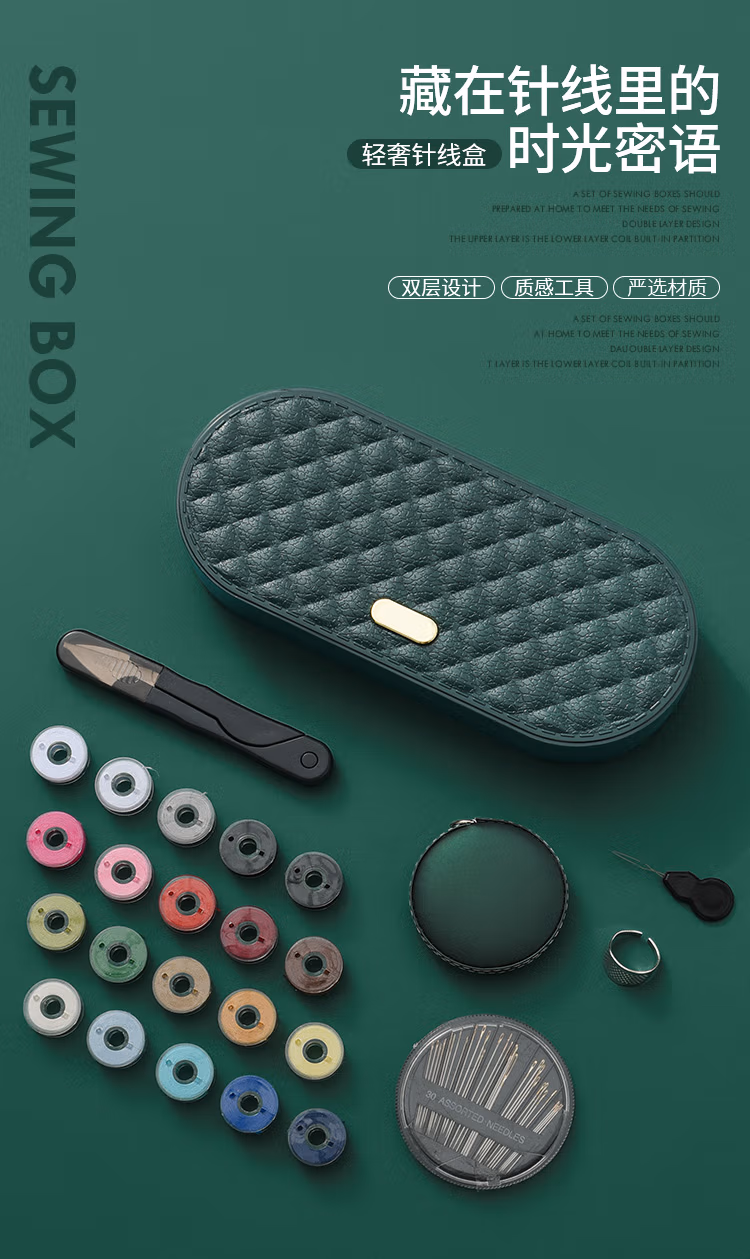 梧桐安安针线盒套装多功能高档实用手缝针线包宿舍便携式长方形缝纫收纳盒 25件套 轻奢绿