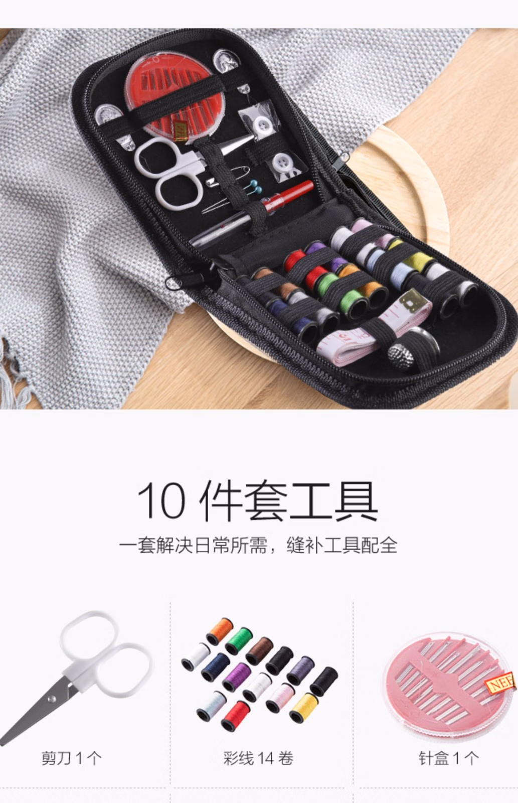 便携针线盒10件套装手工缝纫家用针线缝补配件辅料工具手缝针线包10件套