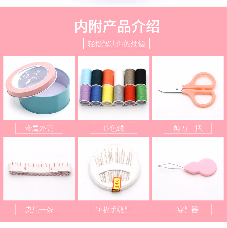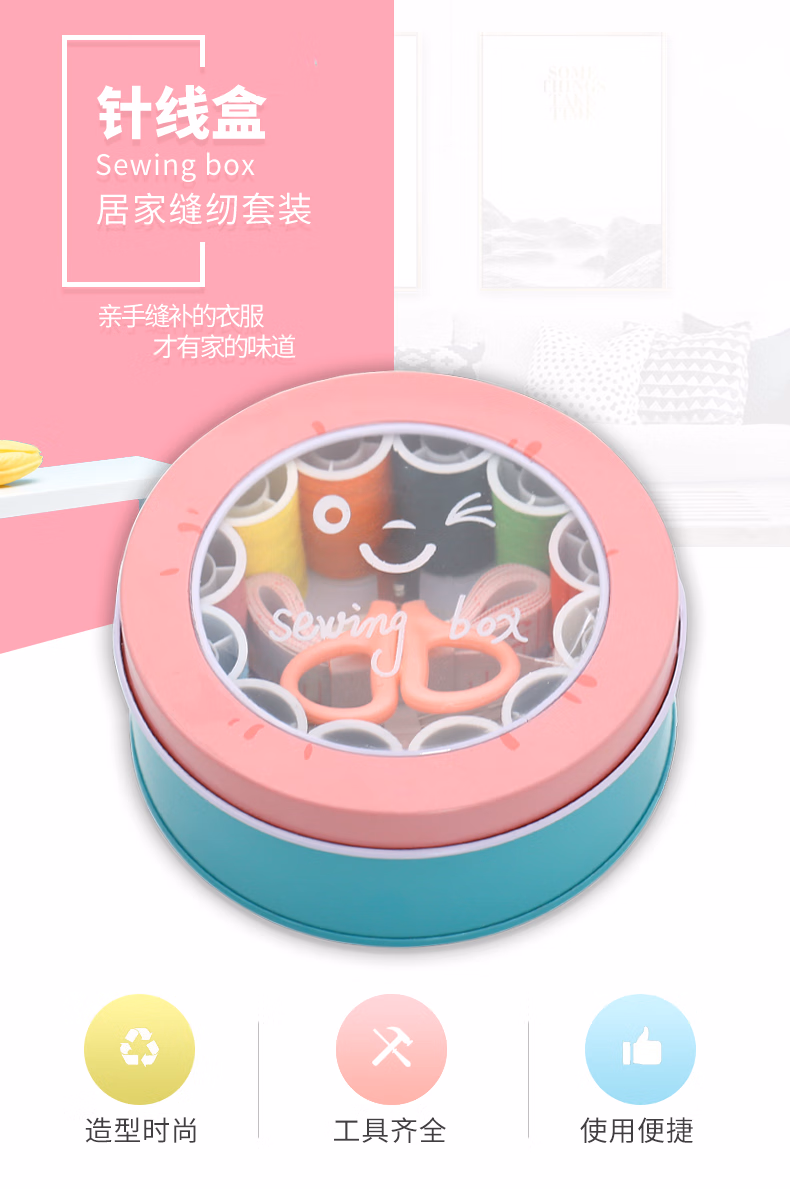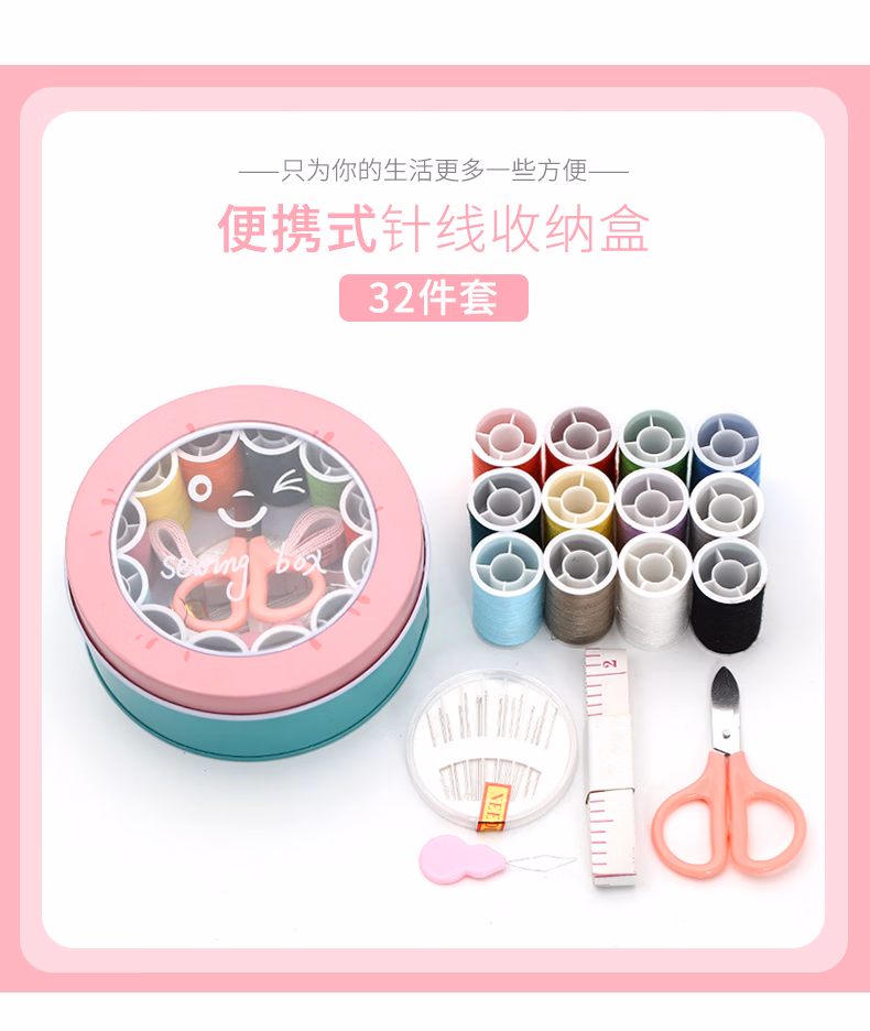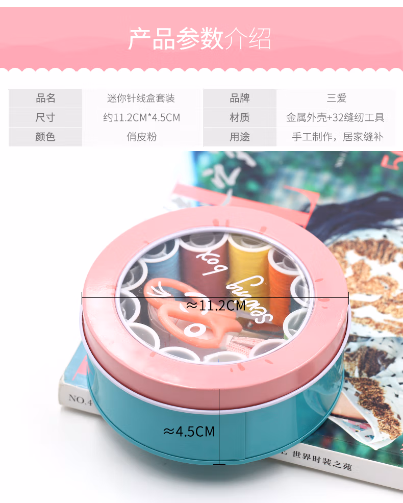 三爱家用便携小型针线盒针线包套装多功能手工缝衣收纳工具缝纫工具百宝箱针线盒