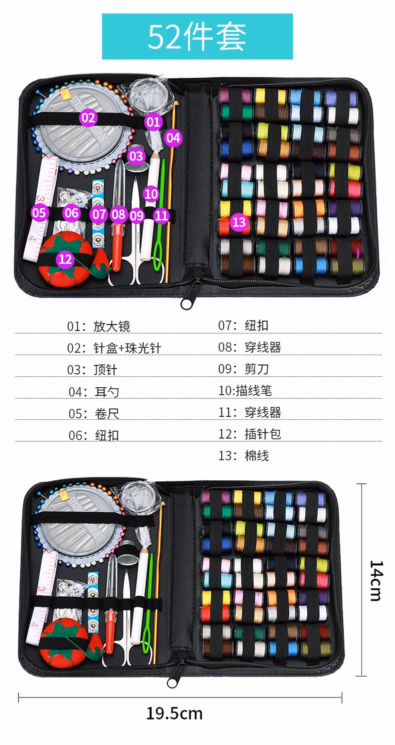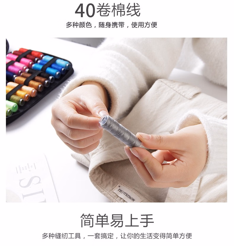 KarLot 针线盒套装 PU材质 家用针线包便携式多功能针线包手工缝针线收纳盒缝纫针手工缝补工具 针线盒【62件套】