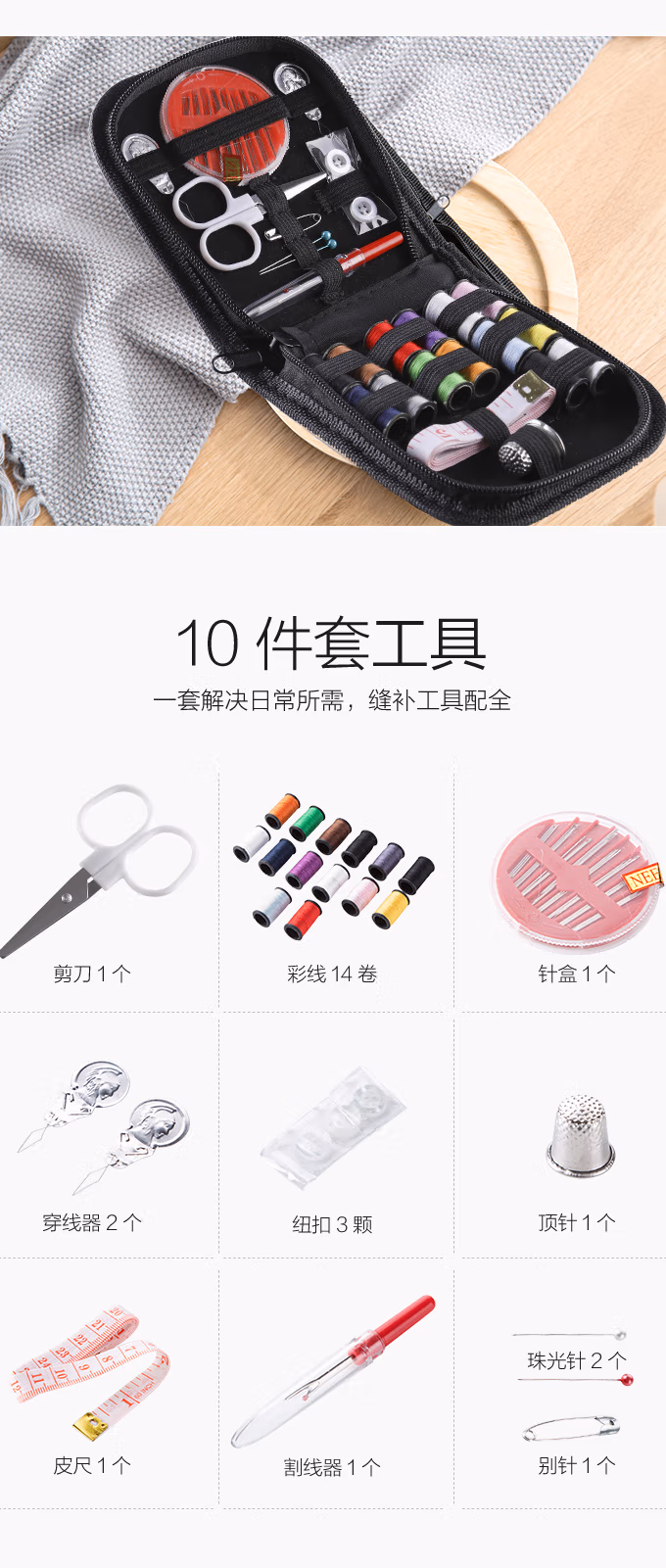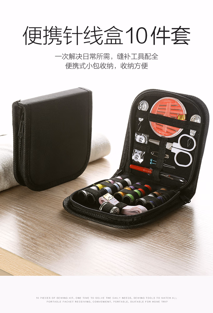 便携针线盒装家用宿舍针线包多用途旅行缝纫机线缝补工具套装缝纫/针织用品收纳盒10件套
