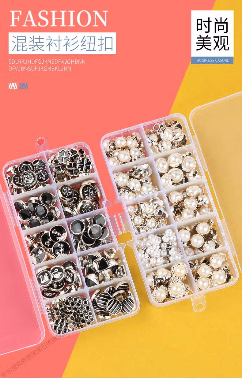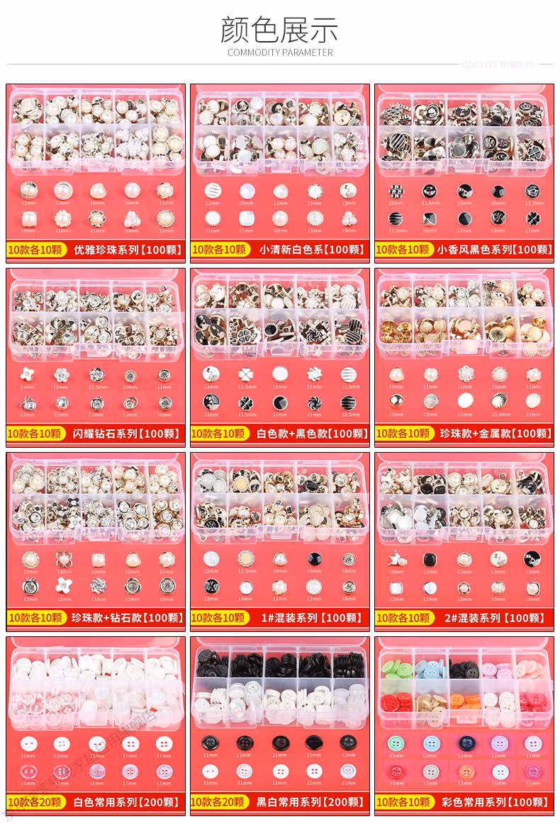 小香风纽扣女衬衫扣子配件百搭精致装饰扣子珍珠时尚衬衣高端钮扣黑白常用系列【共200颗】配针线盒子
