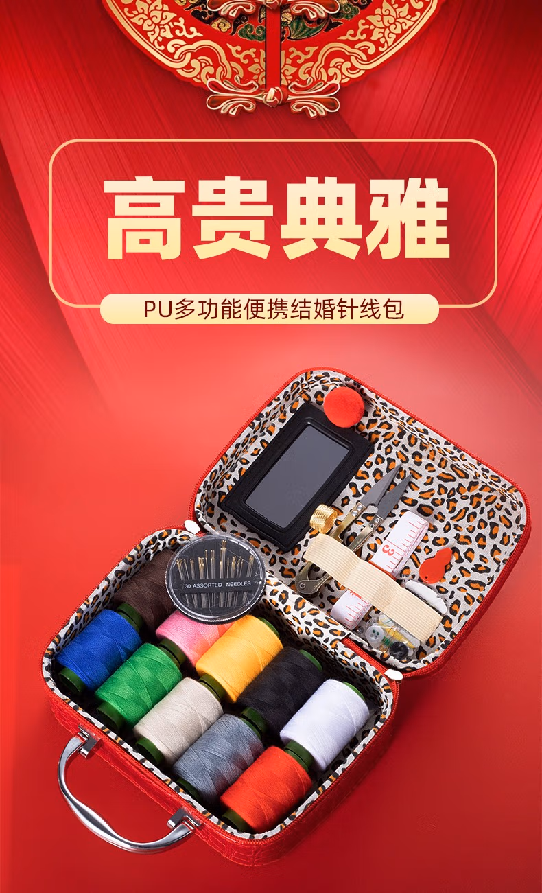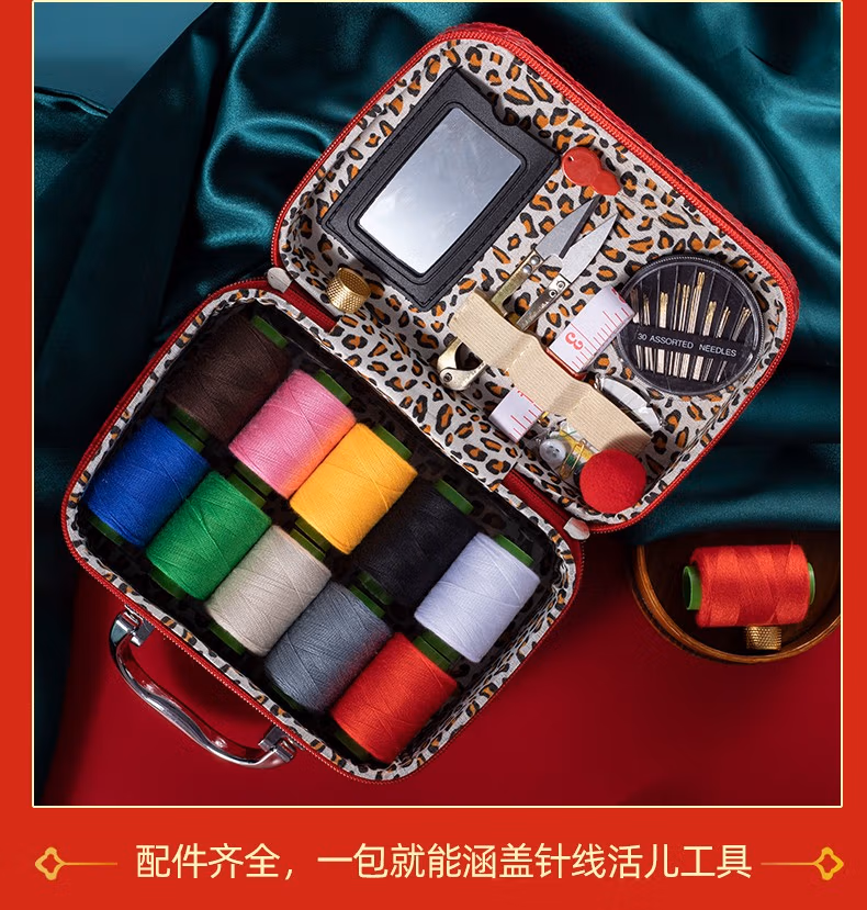 针线盒结婚嫁妆陪嫁针线套装家用针线包工具缝纫用品便携收纳盒婚庆针线箱 1套