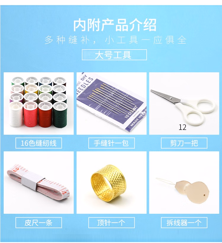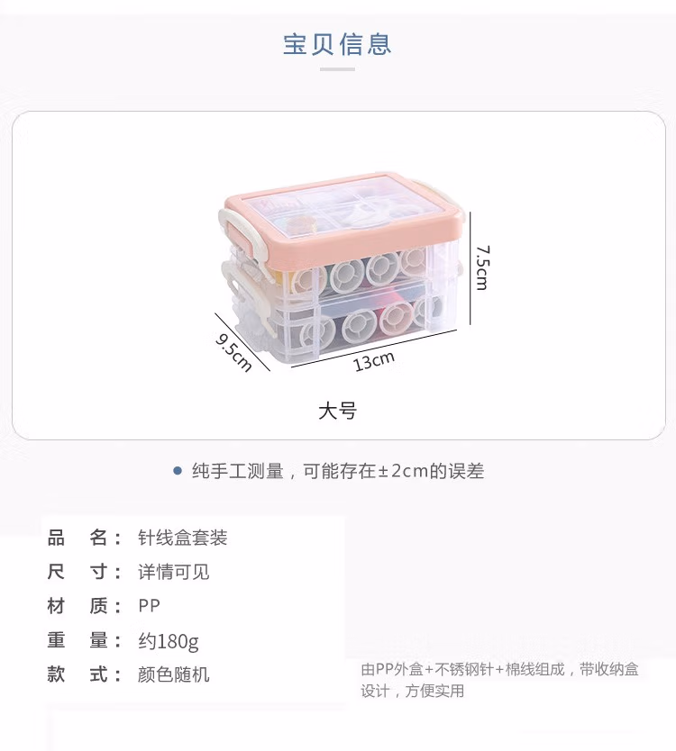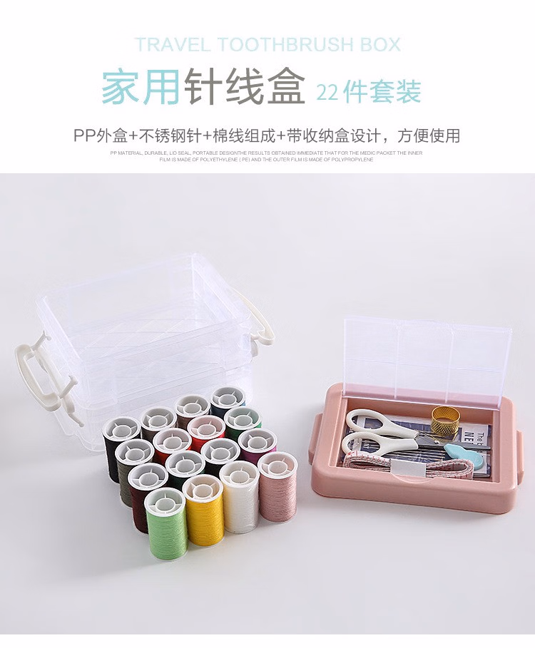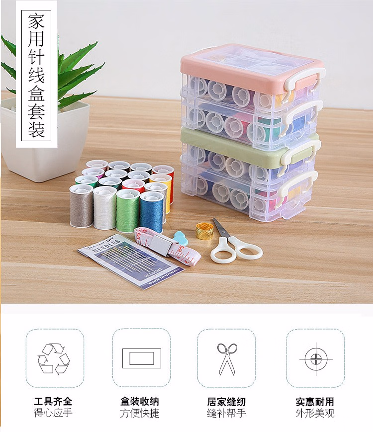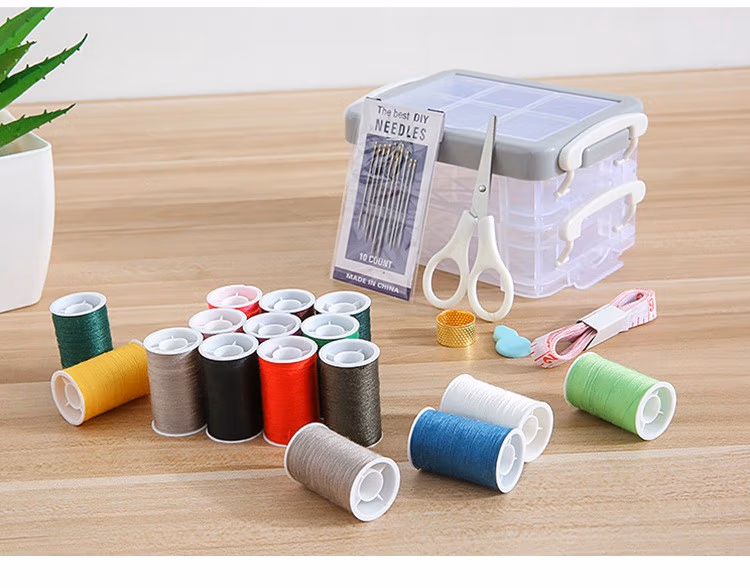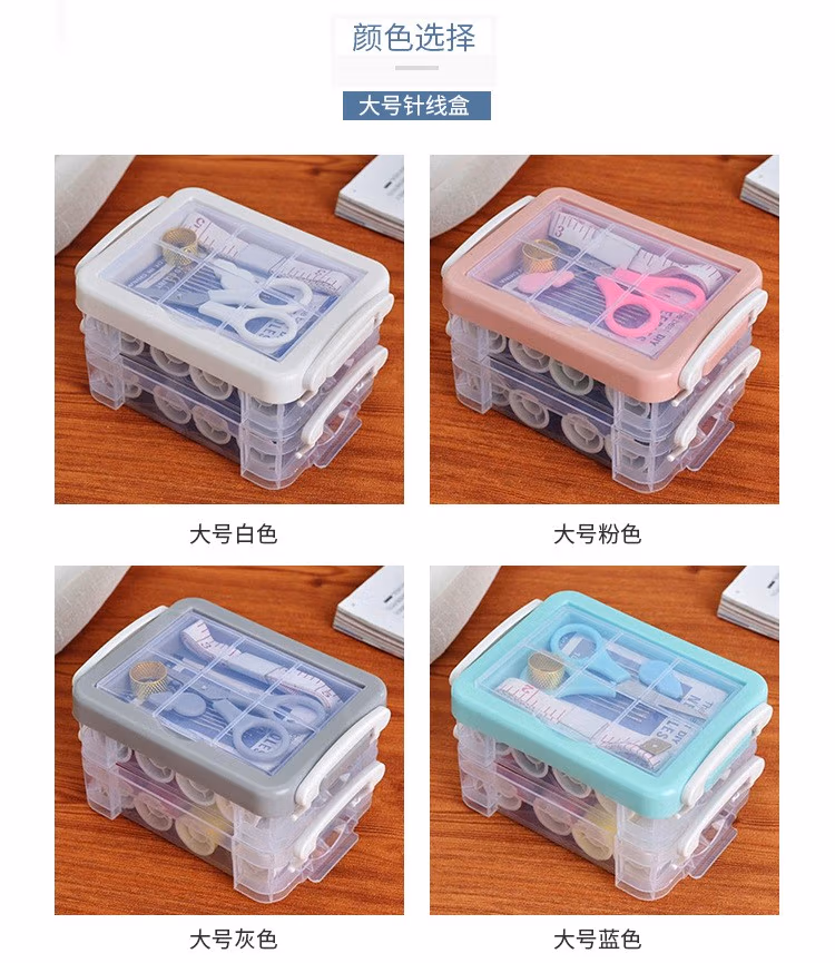 家用双层针线盒套装户外旅行便携缝纫缝补衣物针线盒多功能缝补工具套装缝补衣服扣子多用途方形针线盒收纳包灰色【22件套】