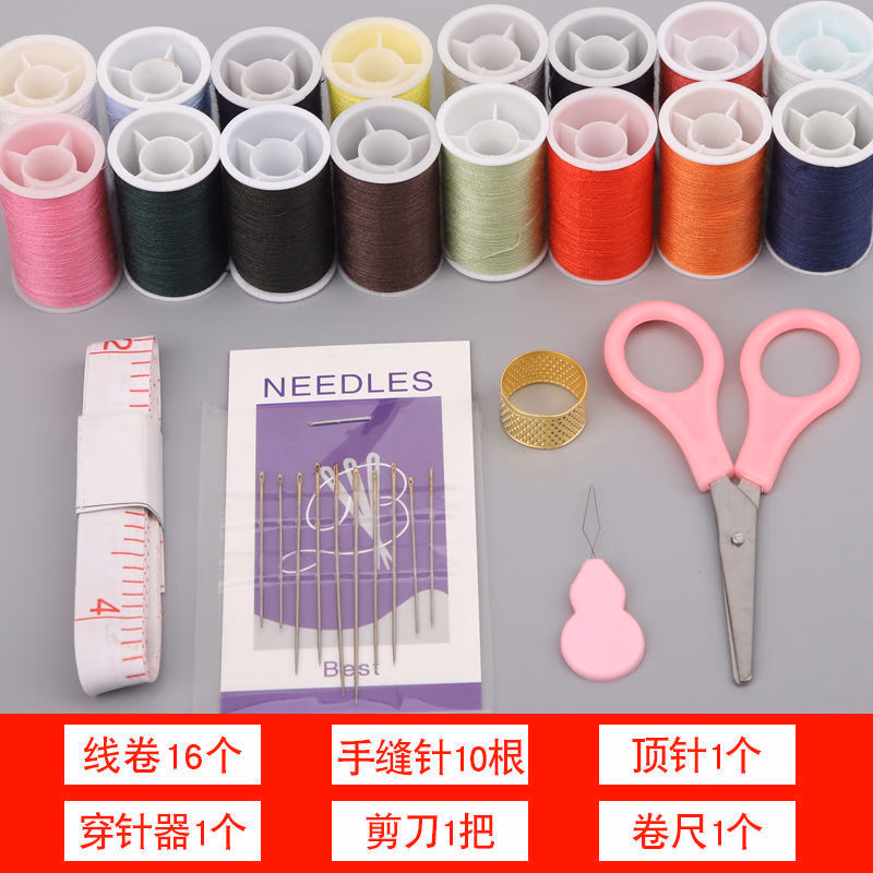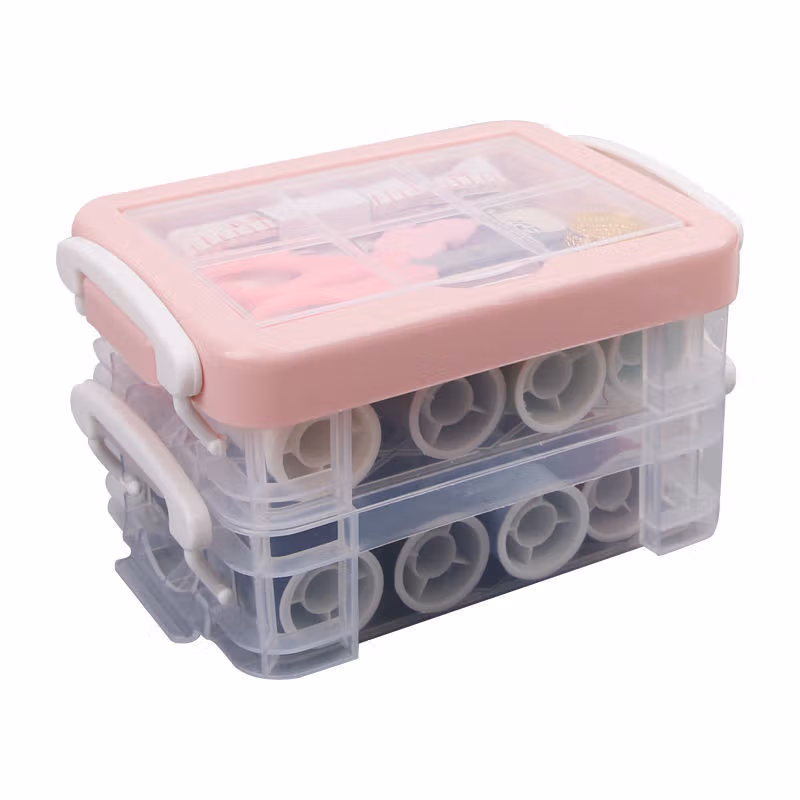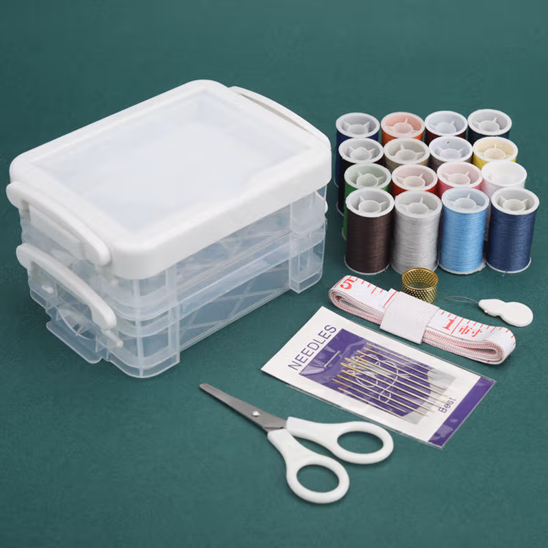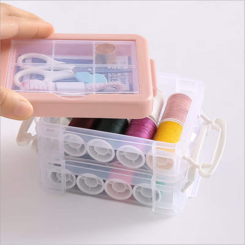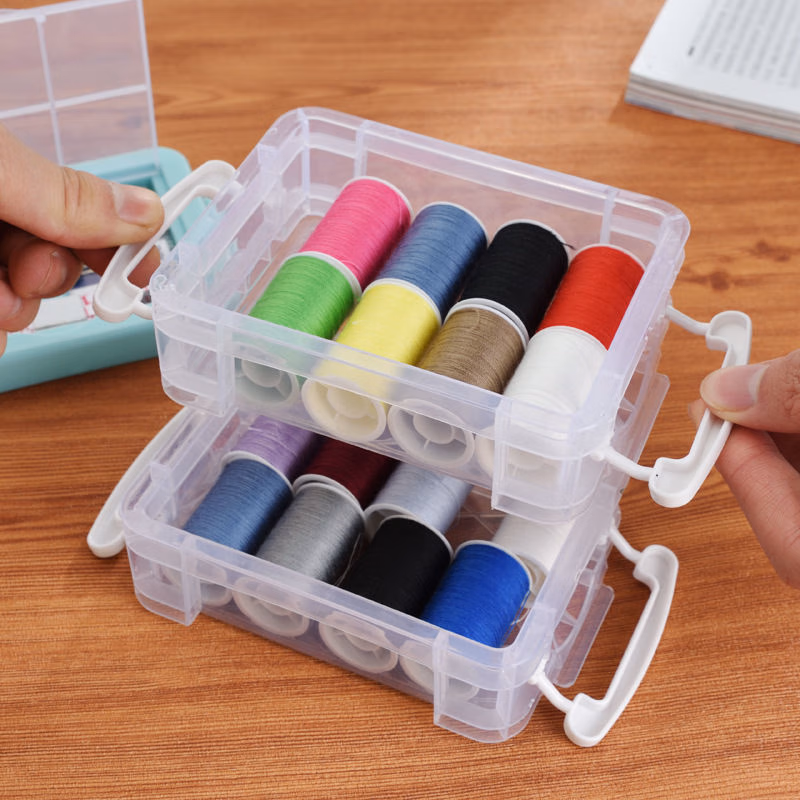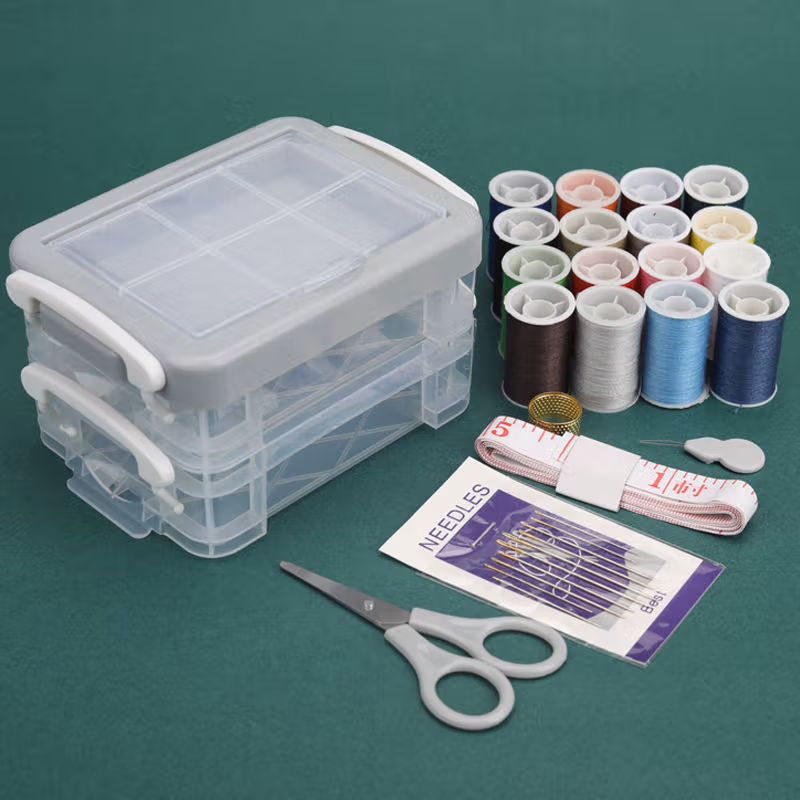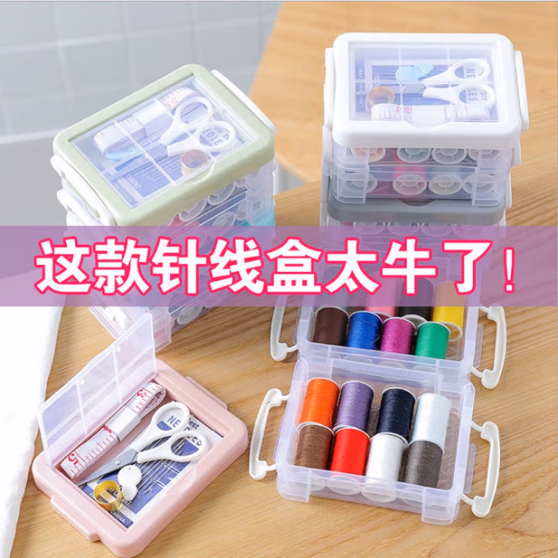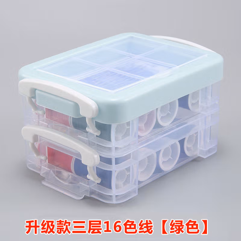 针线盒30件套针线盒套装家用缝补针线包便携式大号三层手工针线收纳盒三层盒绿色