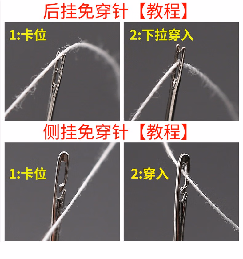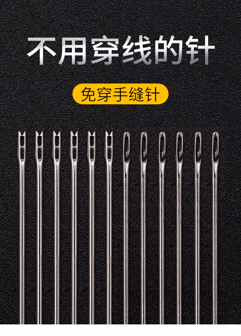 老人不用穿线的针免穿针免认盲人针家用缝衣针木筒手缝针线盒套装侧挂款【大号】1包6枚