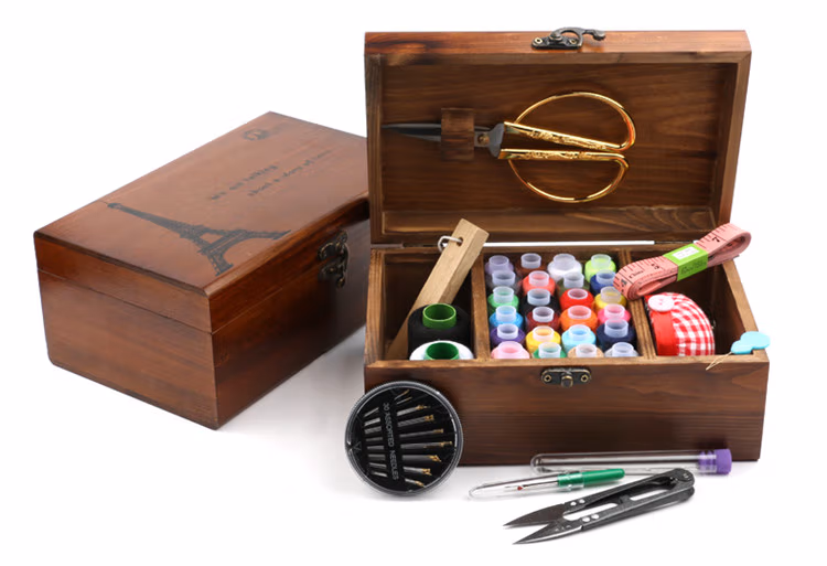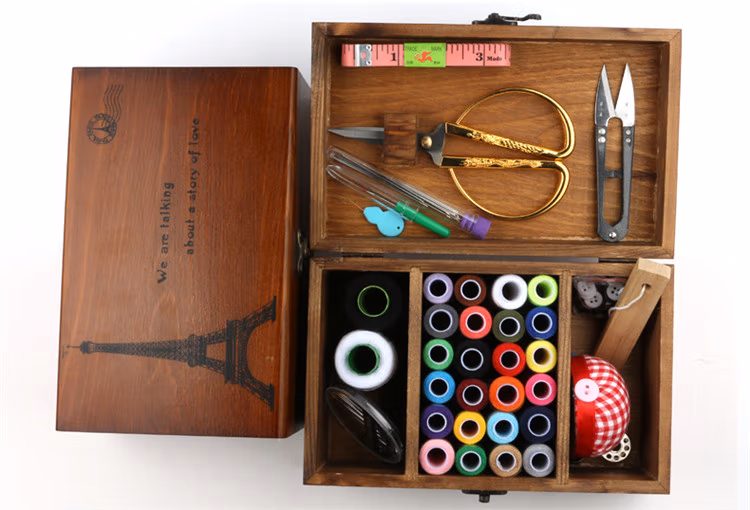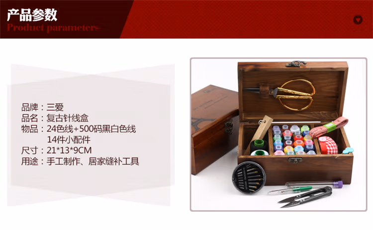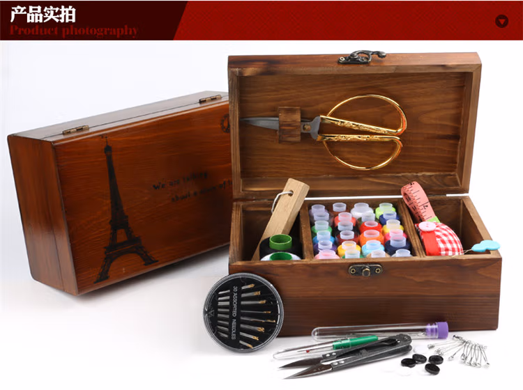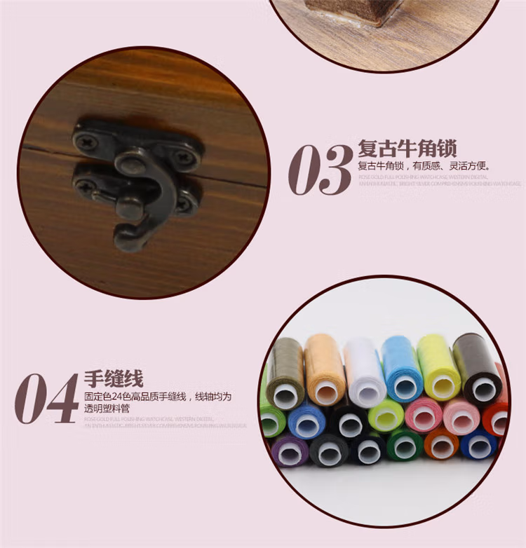 针线盒套装针线包家用缝纫线针线收纳盒十字绣工具实木针线盒复古蒲公英