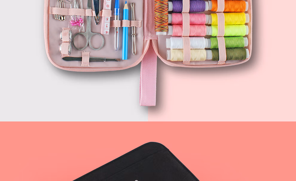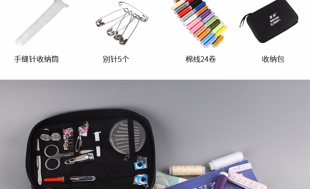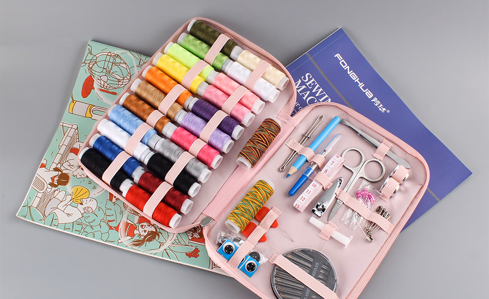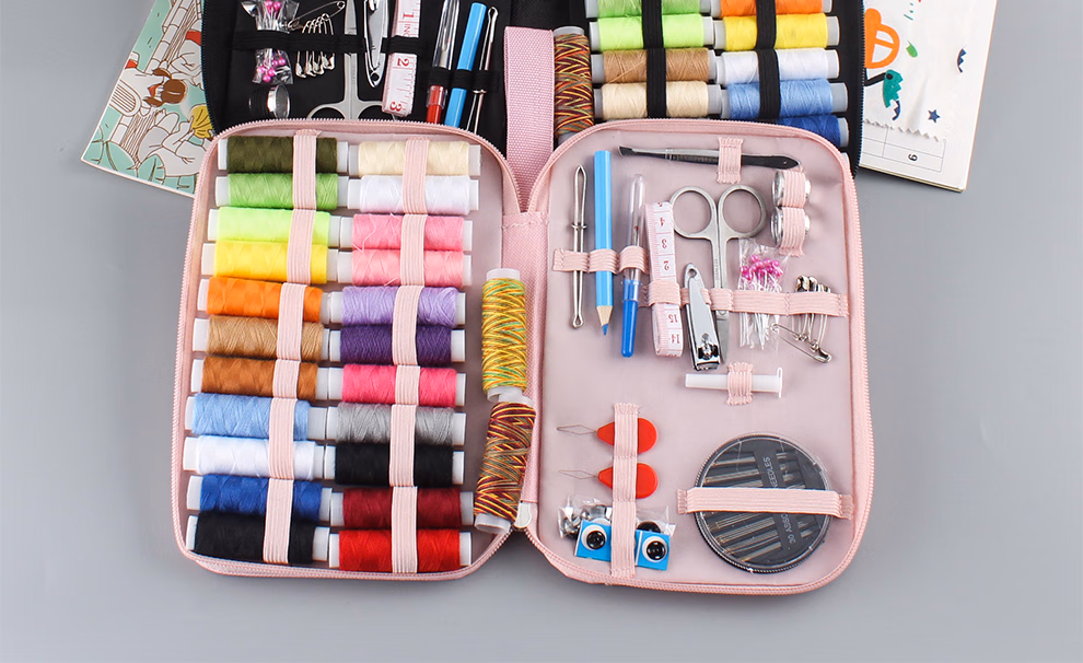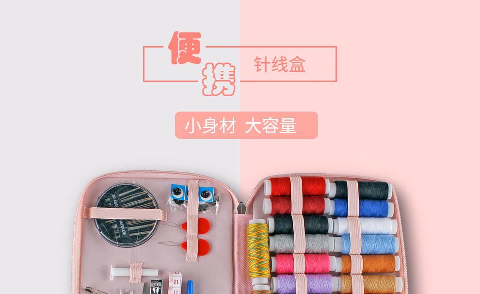 芳华针线盒套装 手提针线包便携式多功能手工缝纫针线收纳盒缝纫针 粉色