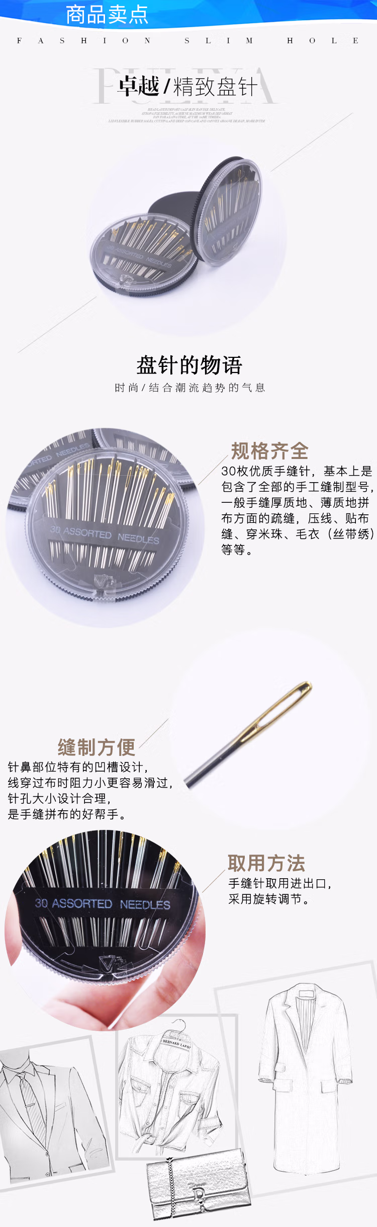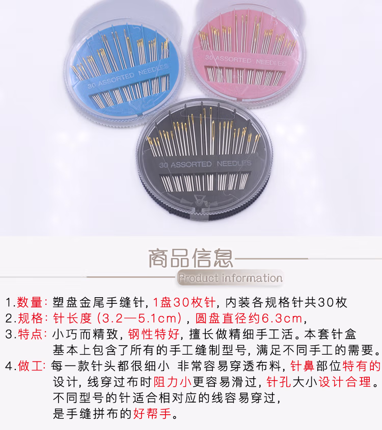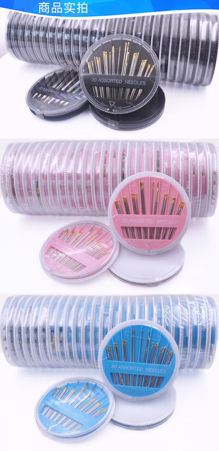 蓬勃30枚金尾手缝针盒 圆盘钢针缝衣针 diy针线盒套装配件缝纫针 黑盘30枚 3.2—5.1cm【1盘】