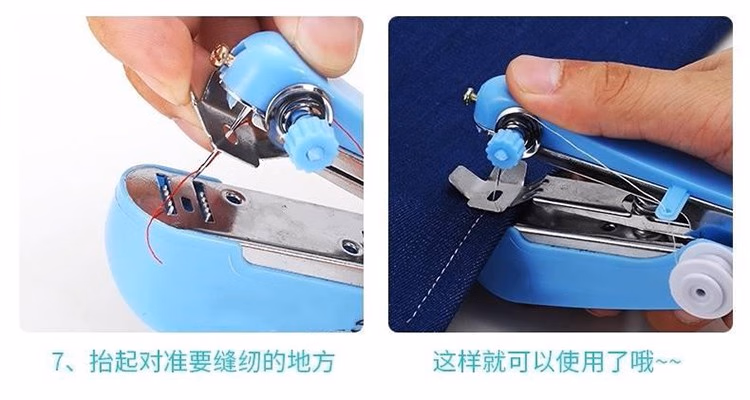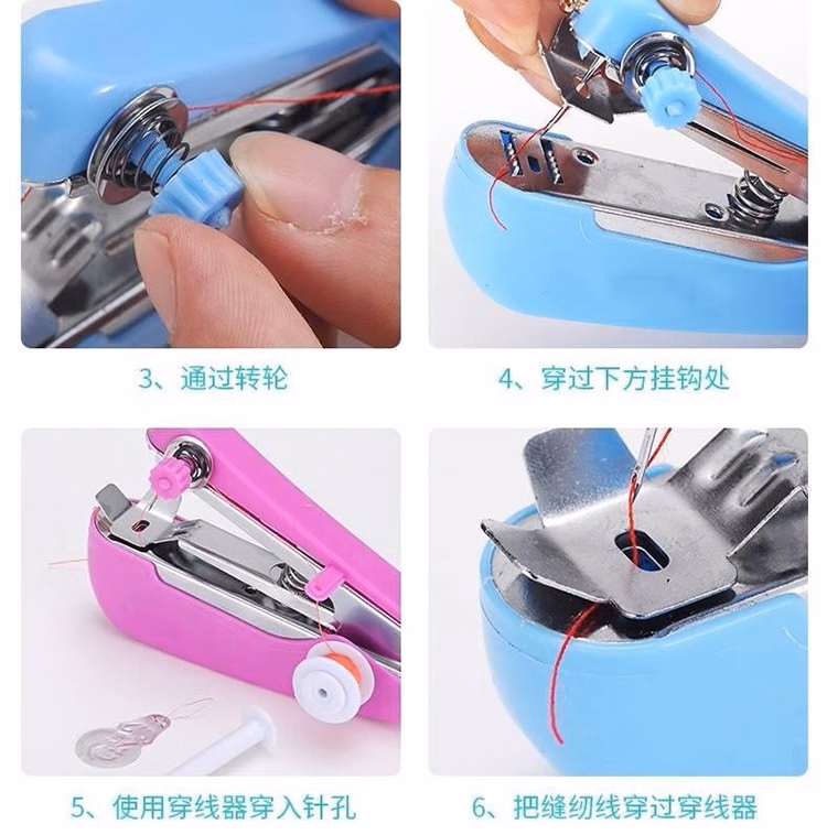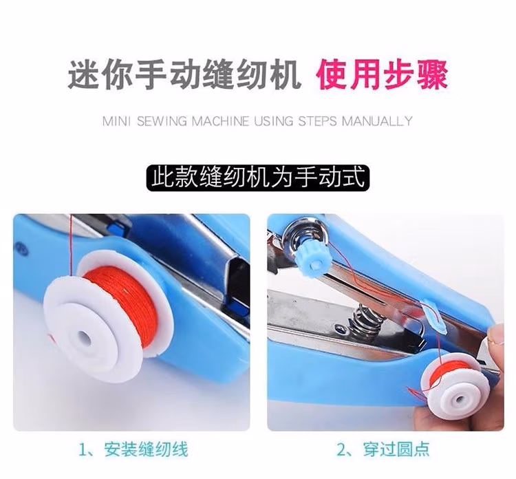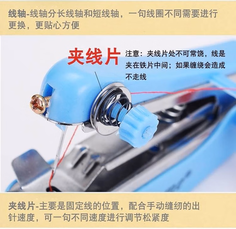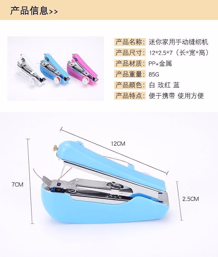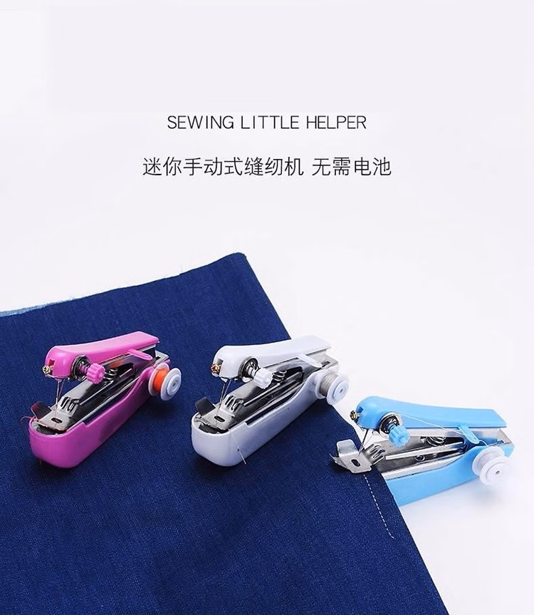泰旭嘉手持缝纫机迷你家用小型简易缝纫机便携式手动袖珍吃厚缝衣神器宿舍缝纫装备多功能针线盒套装缝裤脚 迷你自动 颜色随机发出