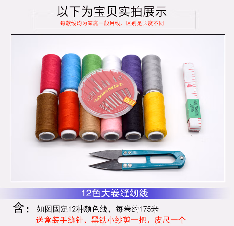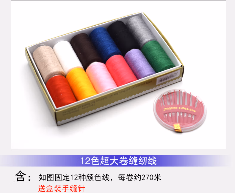 家用缝纫线缝纫机线 针线 手缝线 针线盒套装 12色缝纫线【配如图赠品】