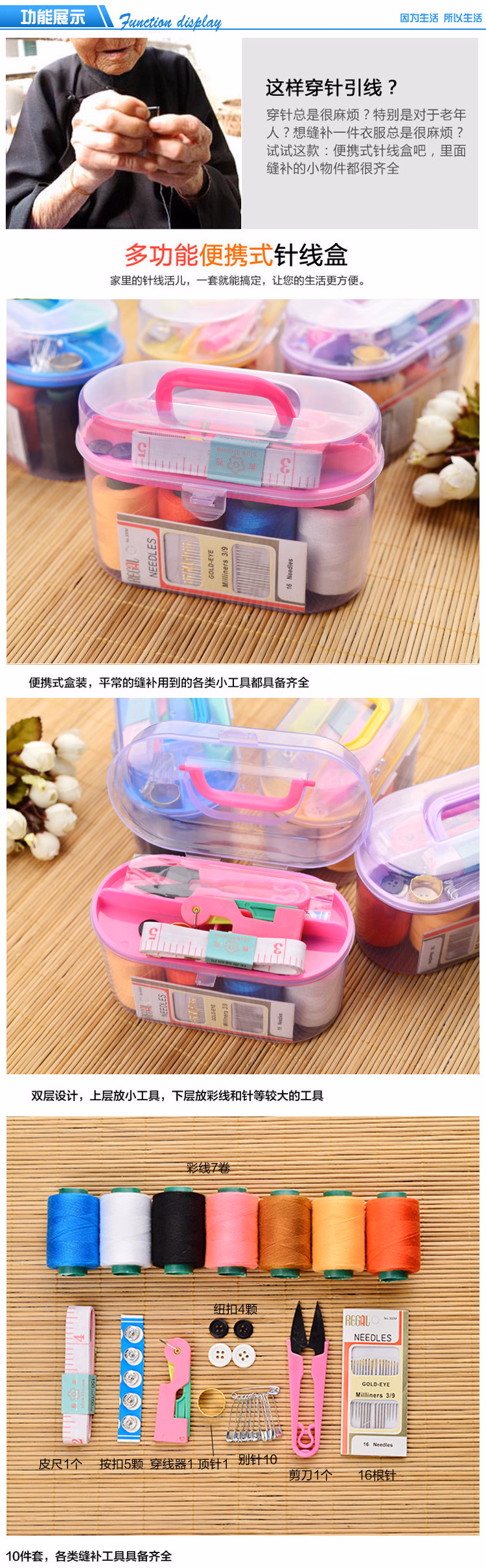 欧凯奇百宝箱针线盒小型便携针线包针线套装家用手缝缝衣手工多功能收纳,