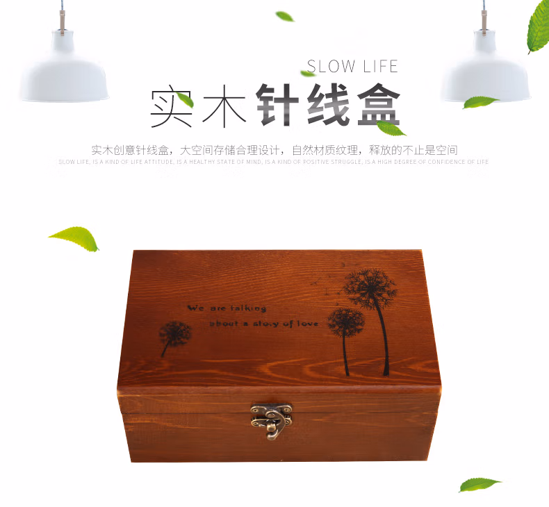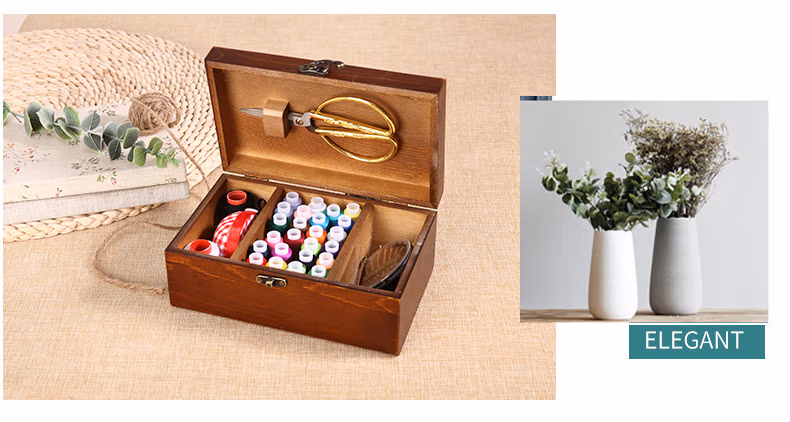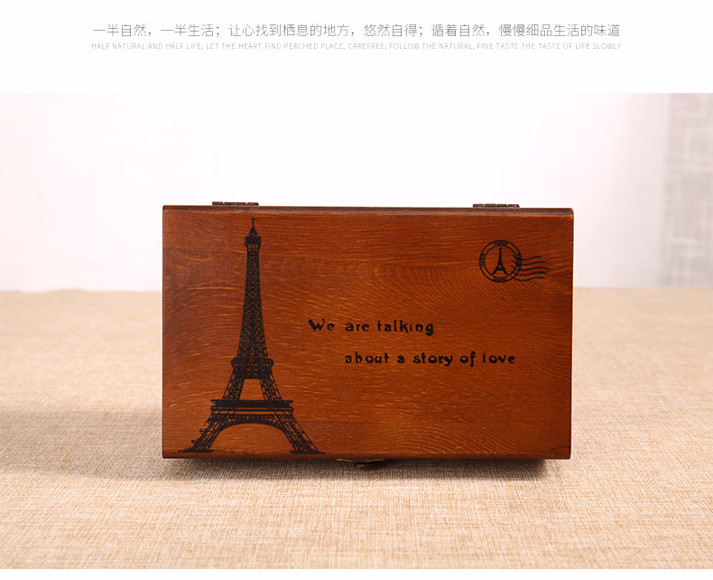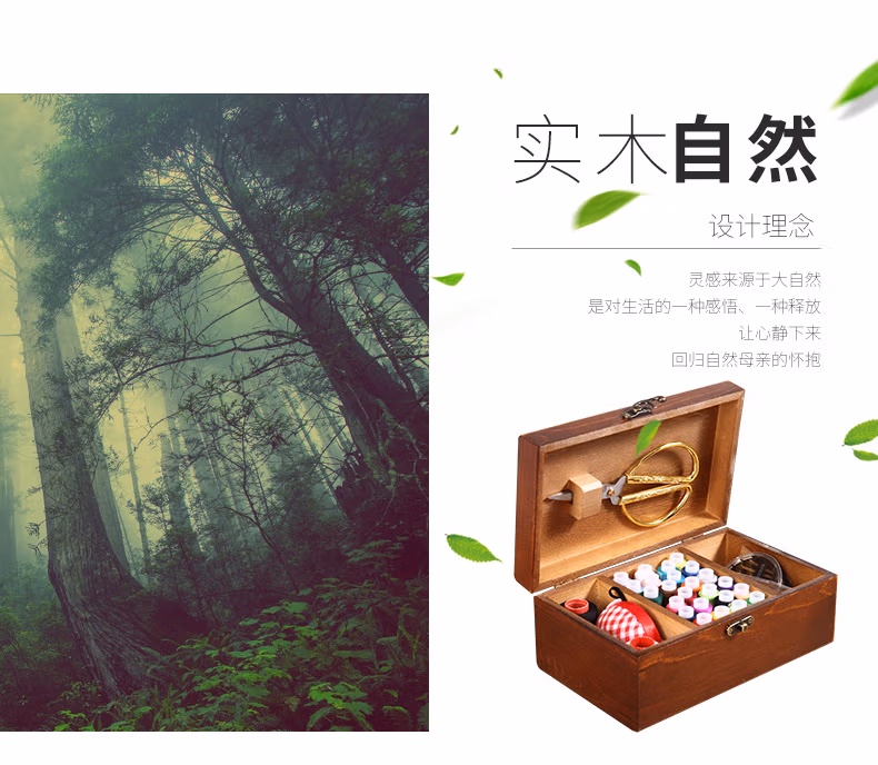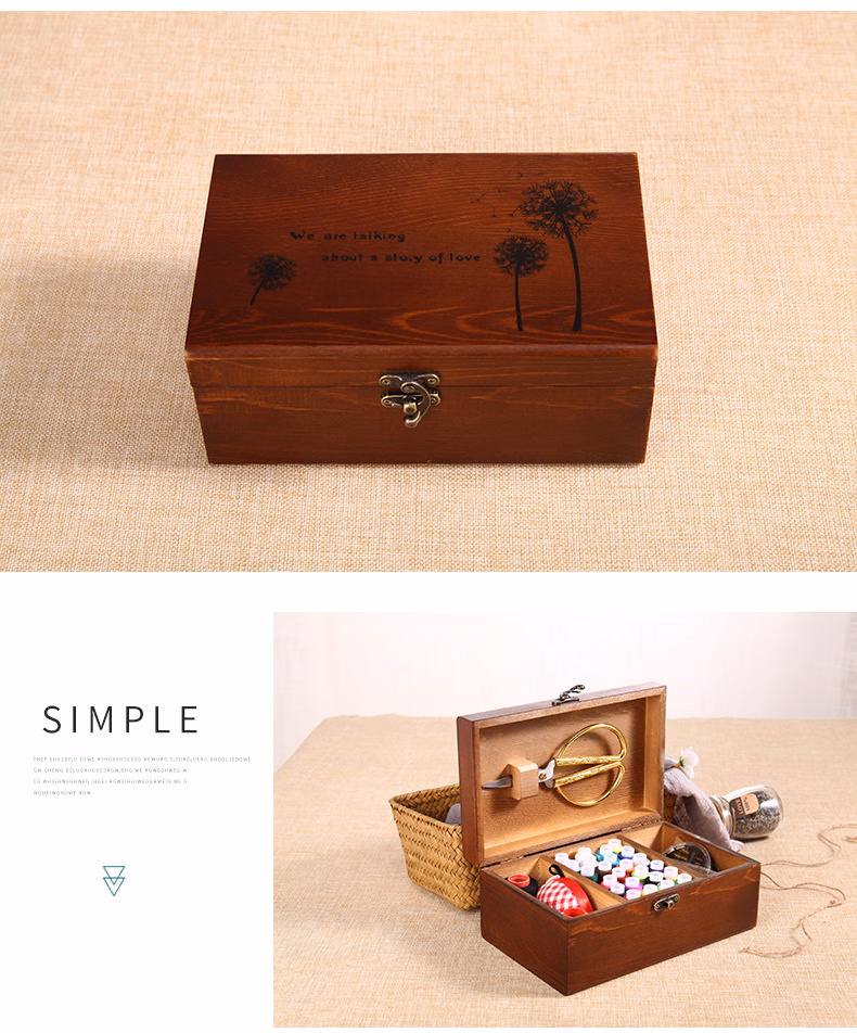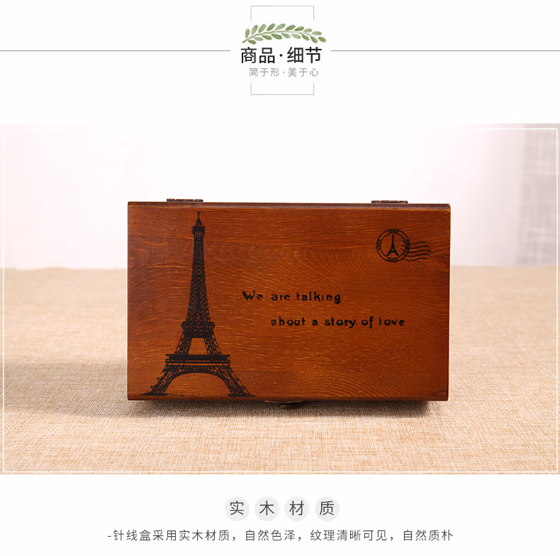 好俏俏针线盒复古木质套装家居缝纫盒家居日用桌面收纳包装盒木盒子 巴黎铁塔款(带针线) 21*13*9cm