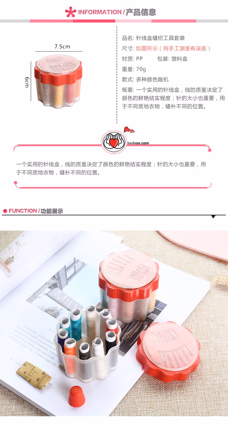 家用针线盒套装手缝便携式小型针线包女学生宿舍塑料线盒子1个装