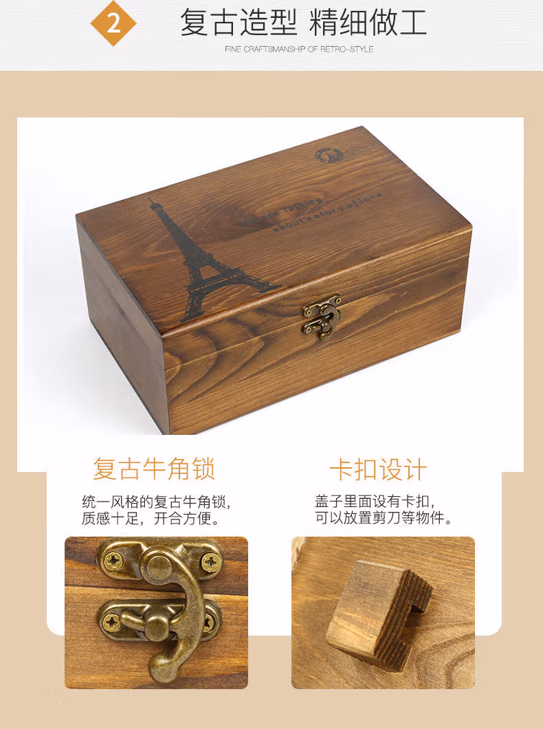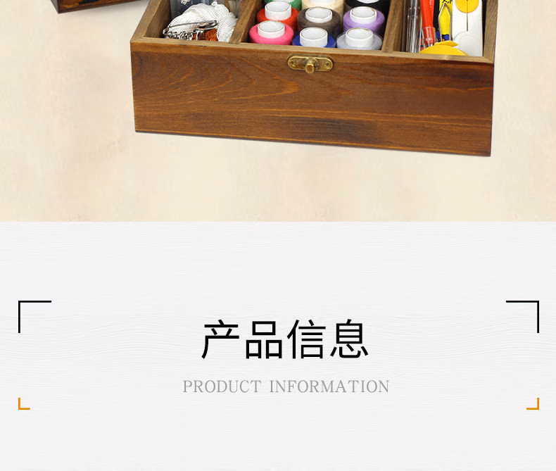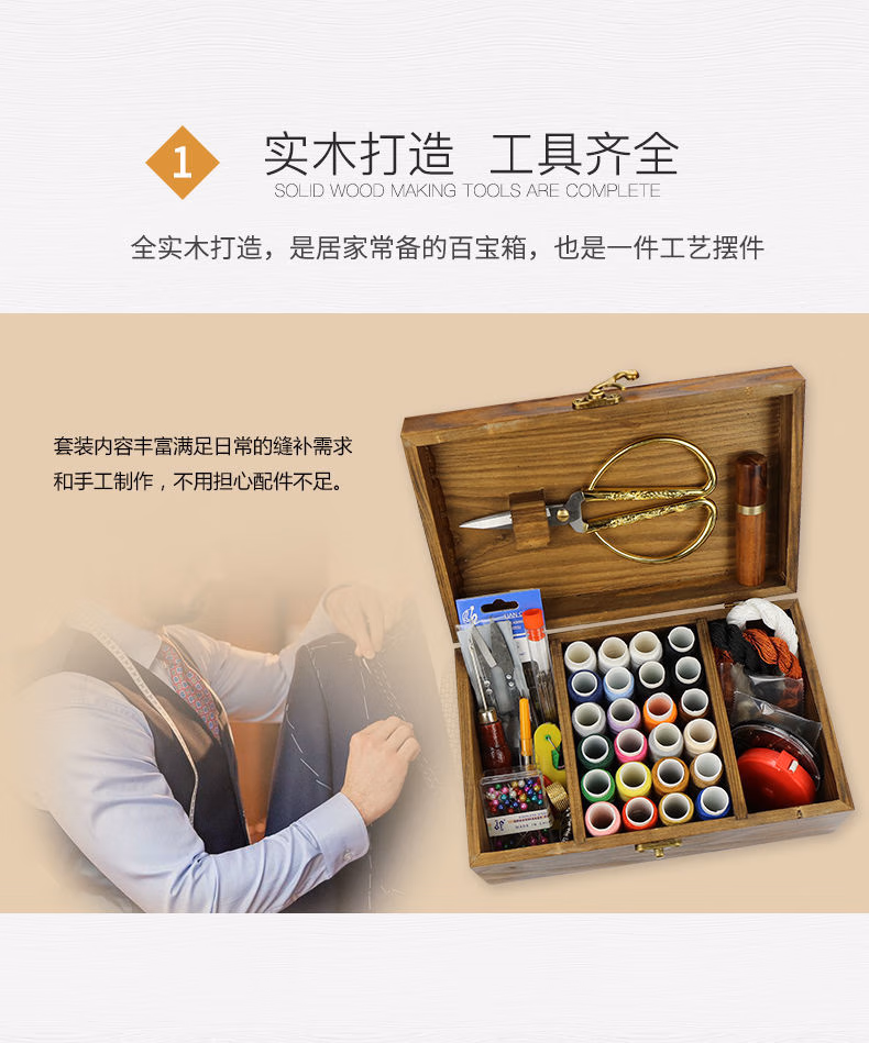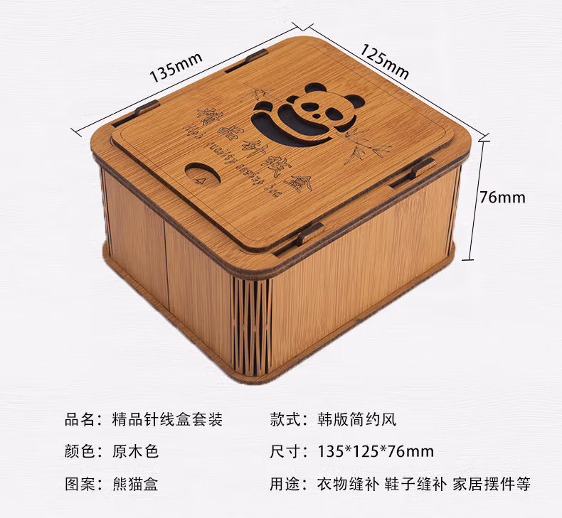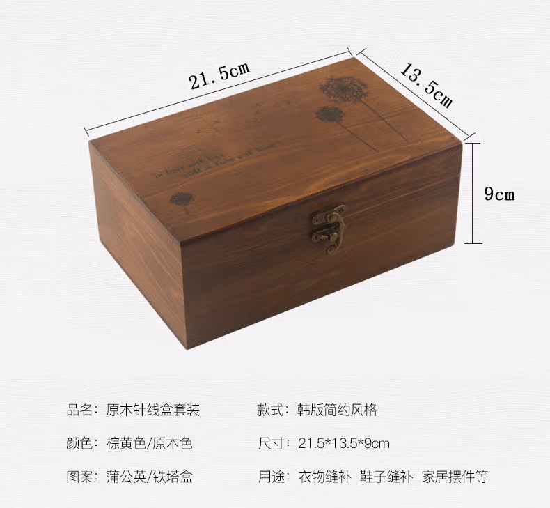 笼趣复古家用针线盒婚嫁手工缝衣服修补工具缝纫便携包线盒木质针线盒(空盒)