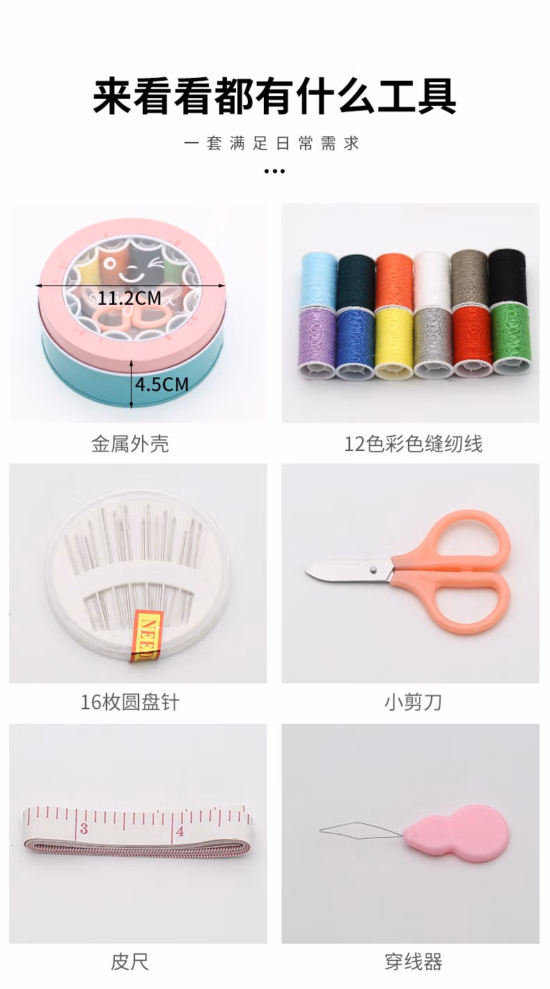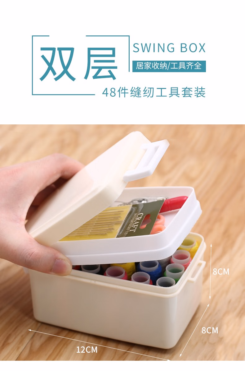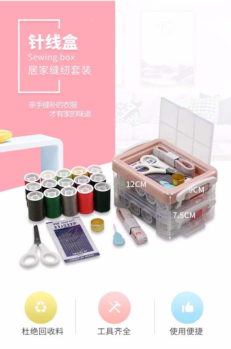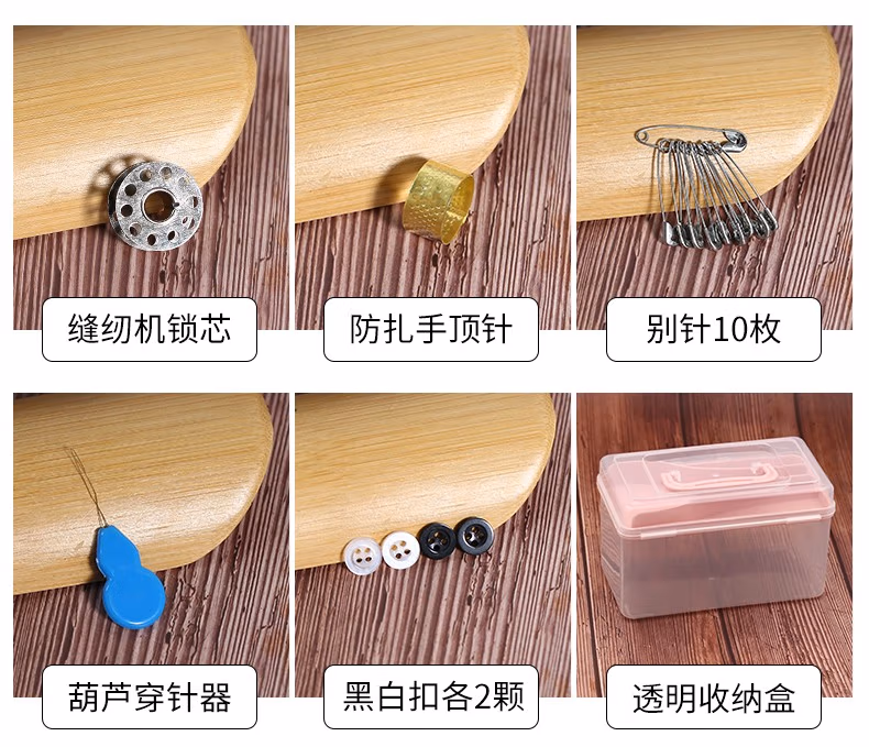 三爱家用针线盒套装缝纫用品工具大号缝衣针线包迷你高档实木阵线盒 竹木熊猫款