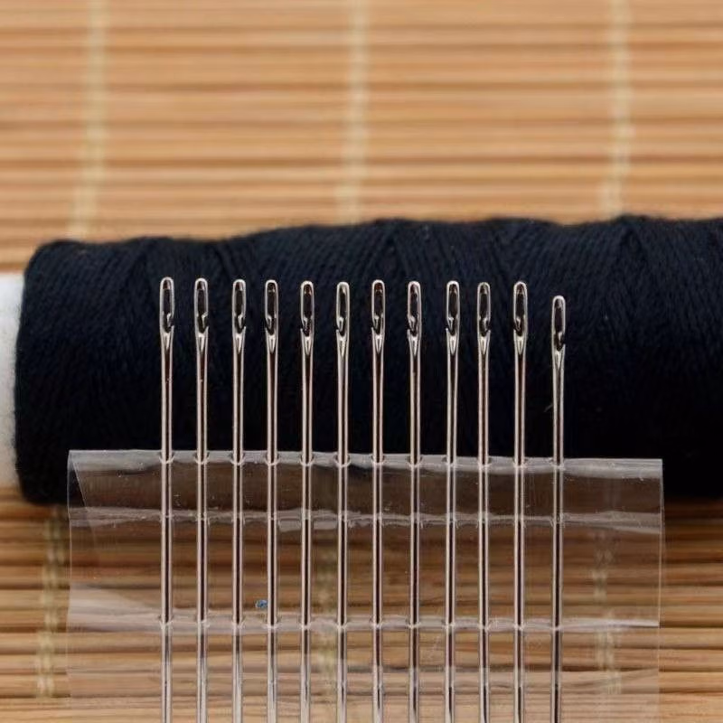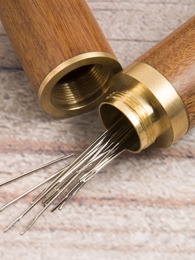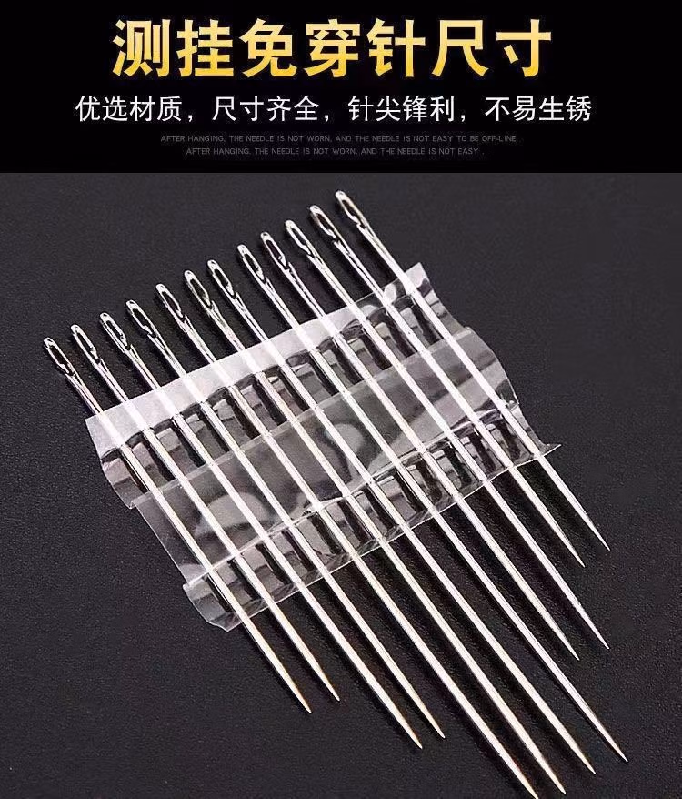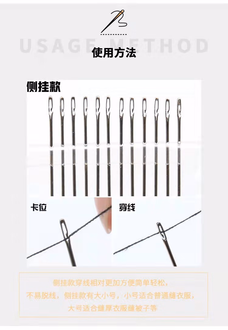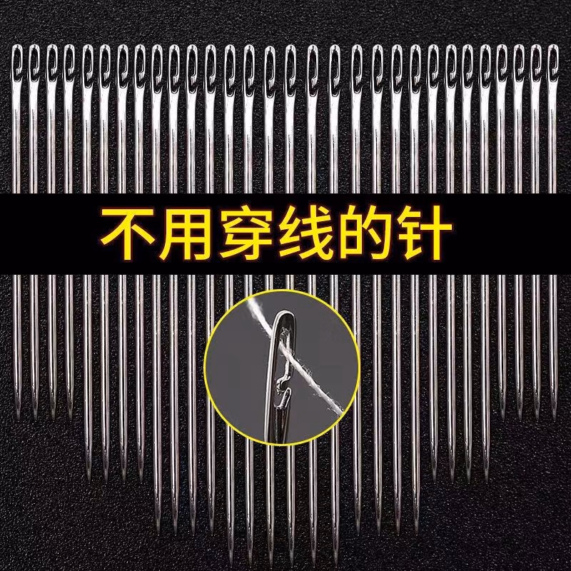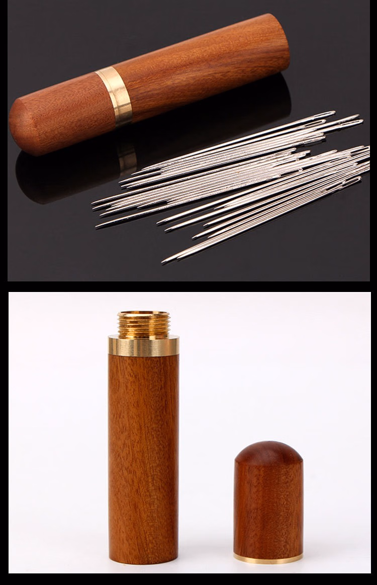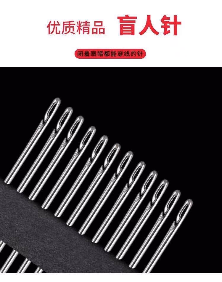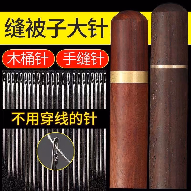 老人不用穿线的针免穿针免认盲人针家用缝衣针木筒手缝针线盒套装黑檀木针桶 12根针【2套】