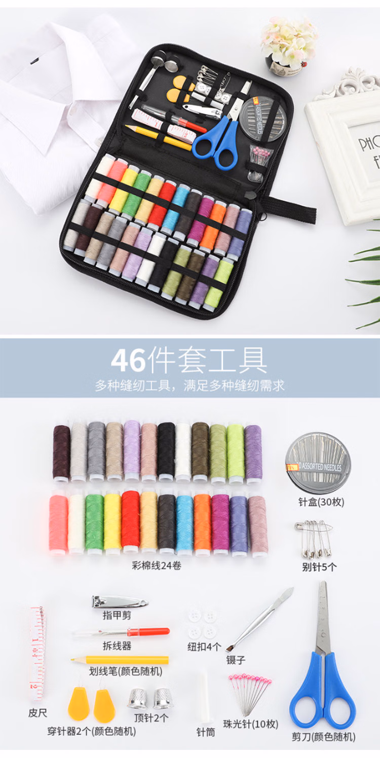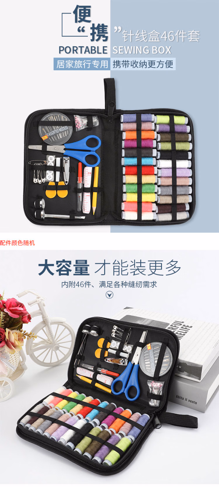 巢极佳品针线包 家用宿舍针线盒套装 旅行便携缝纫缝补工具 针线收纳盒46件套