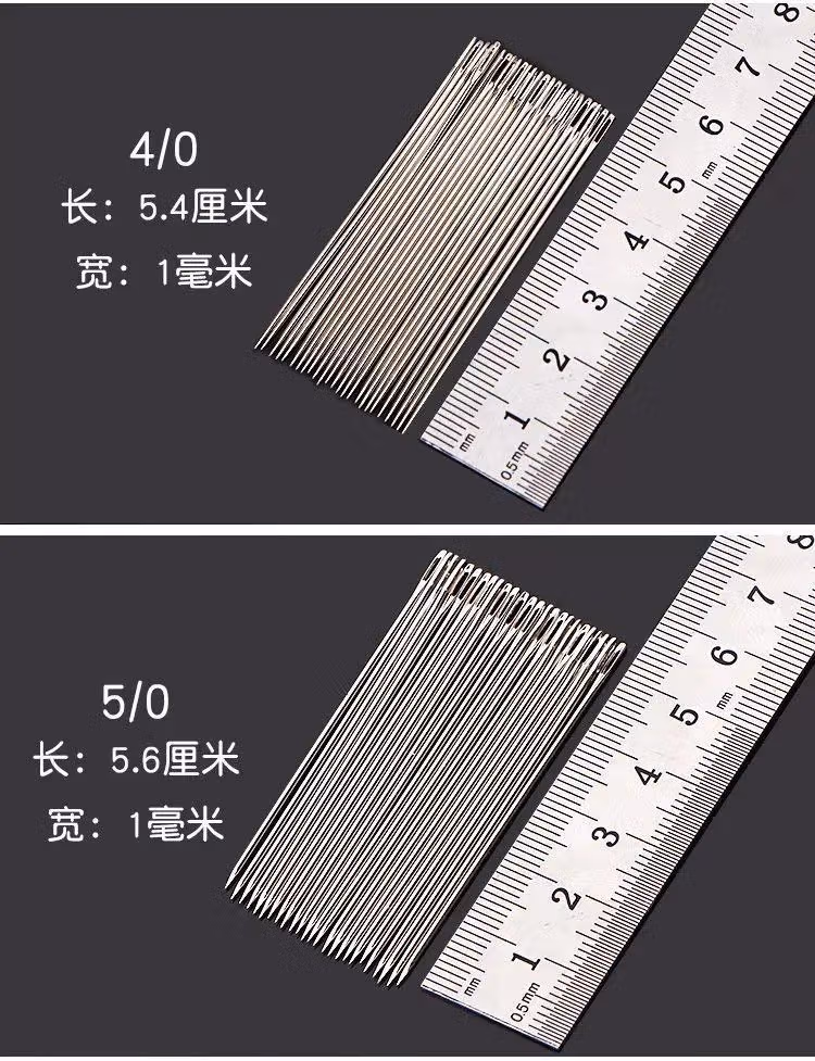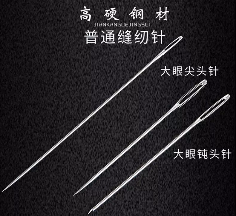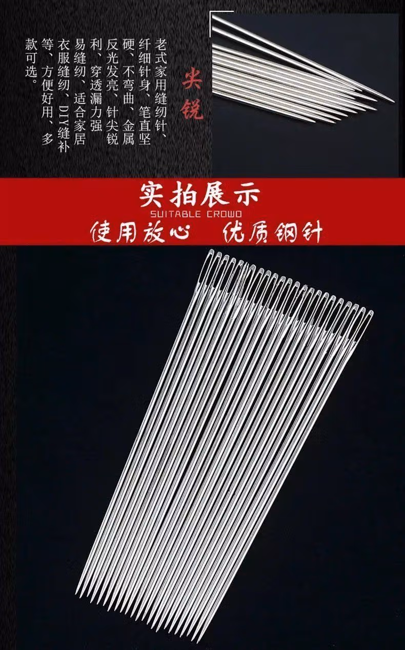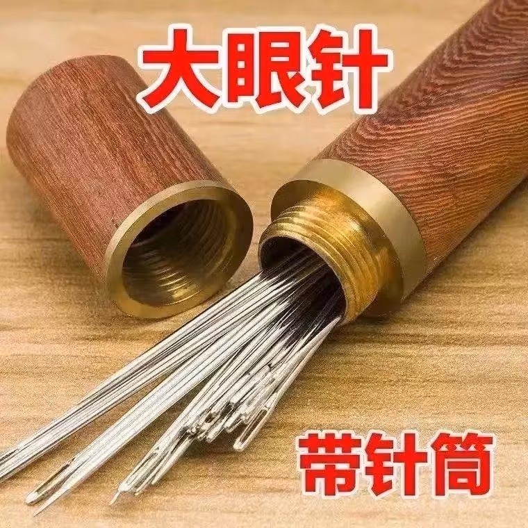 大眼针手缝针老人针家用大眼细长传统手工缝衣缝被子木桶针线盒大眼针-【5种尺寸混合新组合装】 1瓶24根 檀木针筒 戒指顶针