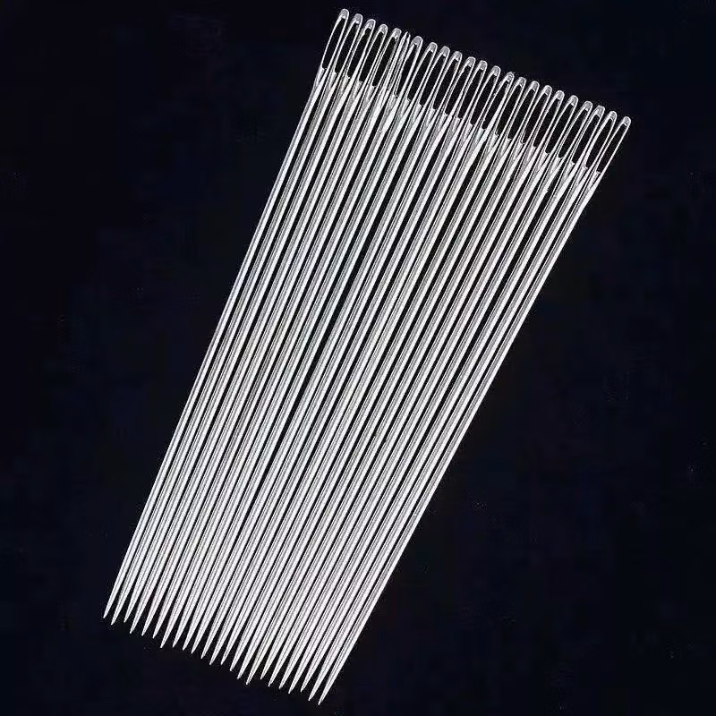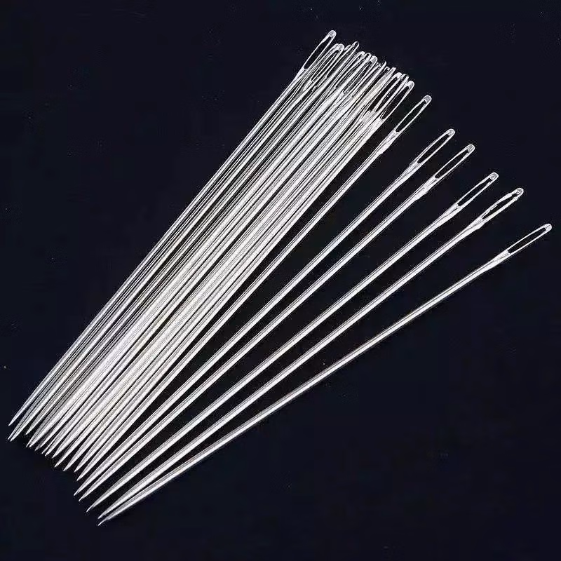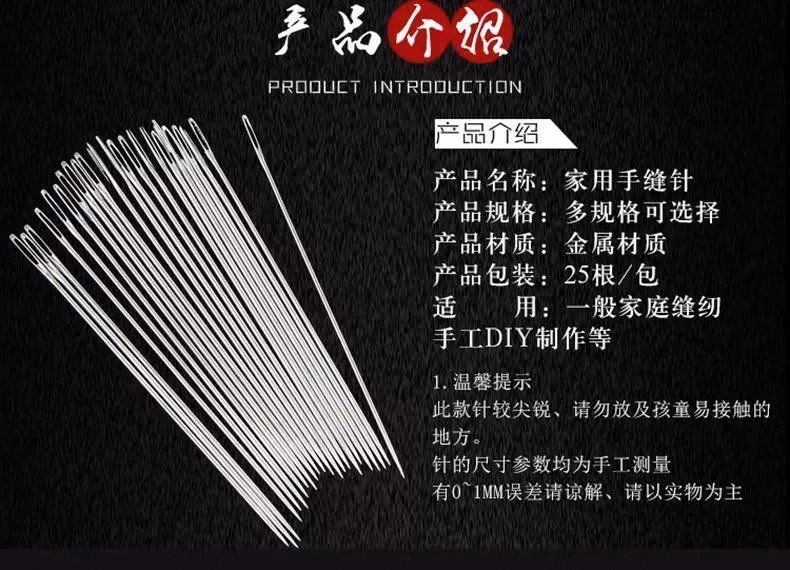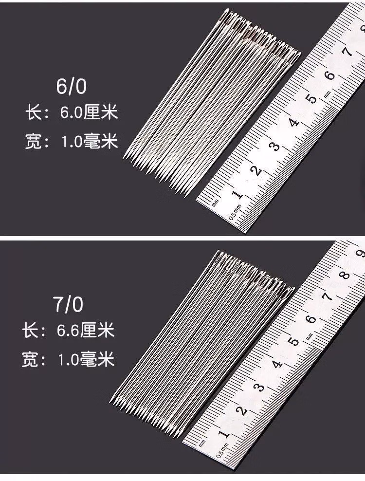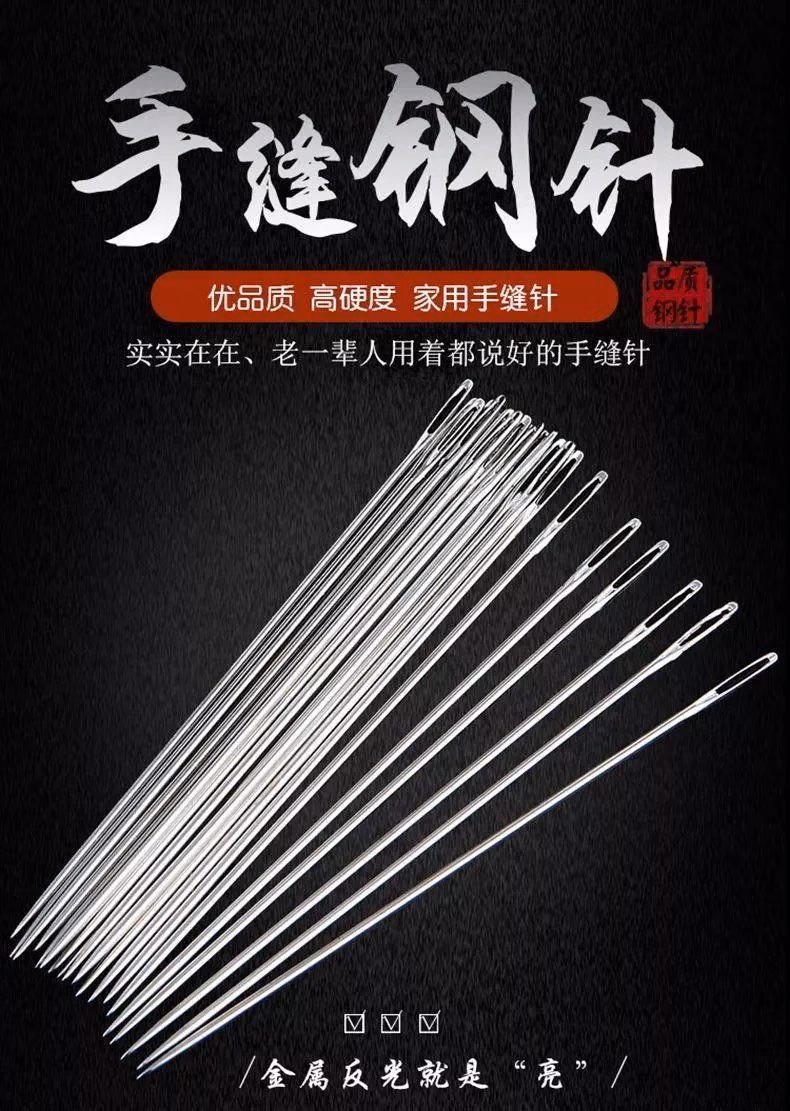 大眼针手缝针老人针家用大眼细长传统手工缝衣缝被子木桶针线盒大眼针-【5种尺寸混合新组合装】 1瓶24根 檀木针筒 戒指顶针