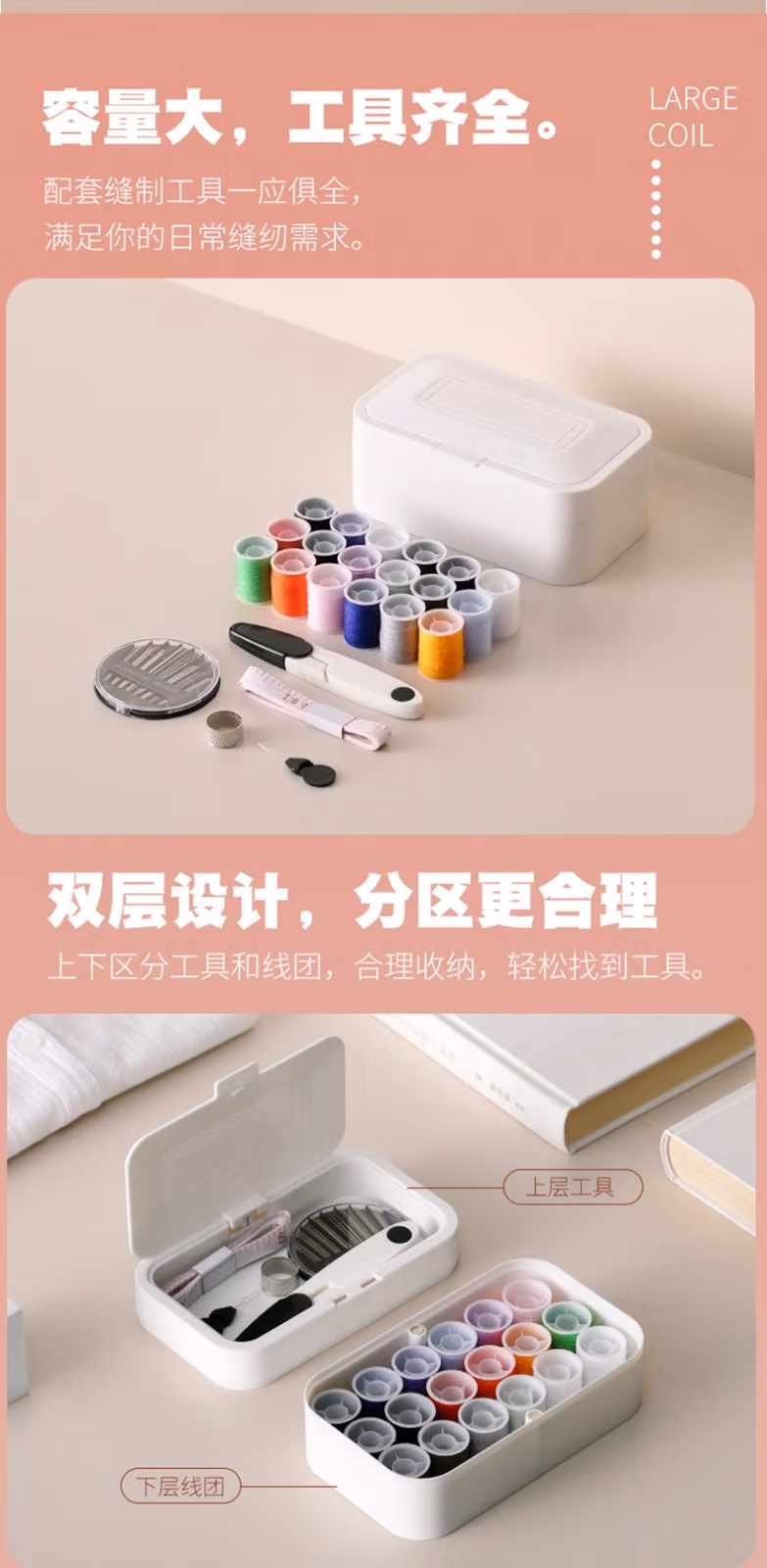 Imakara针线盒家用高品质套装手工收纳针线盒迷你多功能用途旅游便携缝纫缝补材料工具针线包多功能针线盒