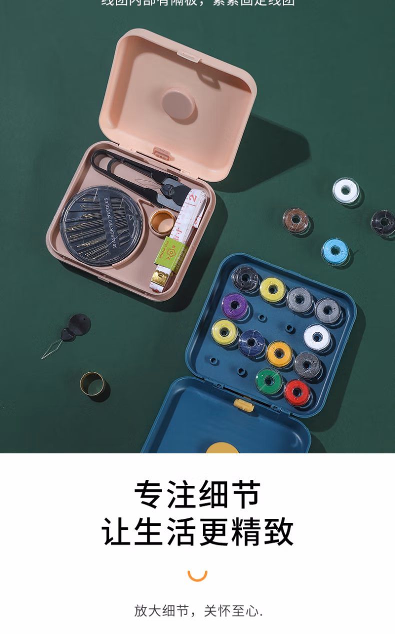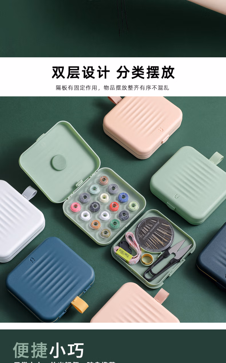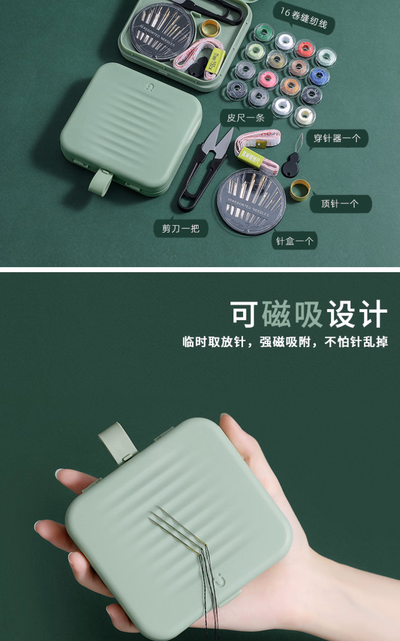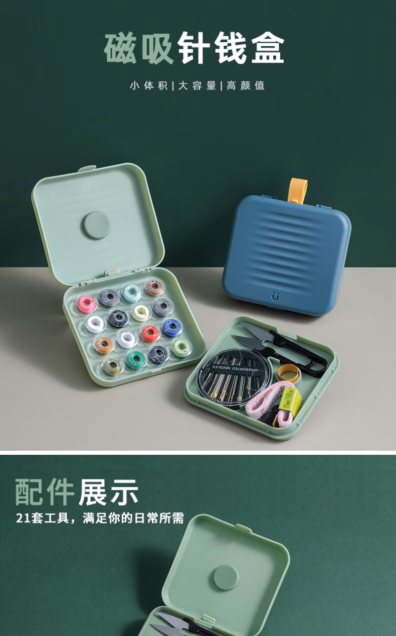 磁吸针线盒针线包宿舍学生家用旅行便携缝纫缝补针线包套装收纳包蓝色【21套工具】