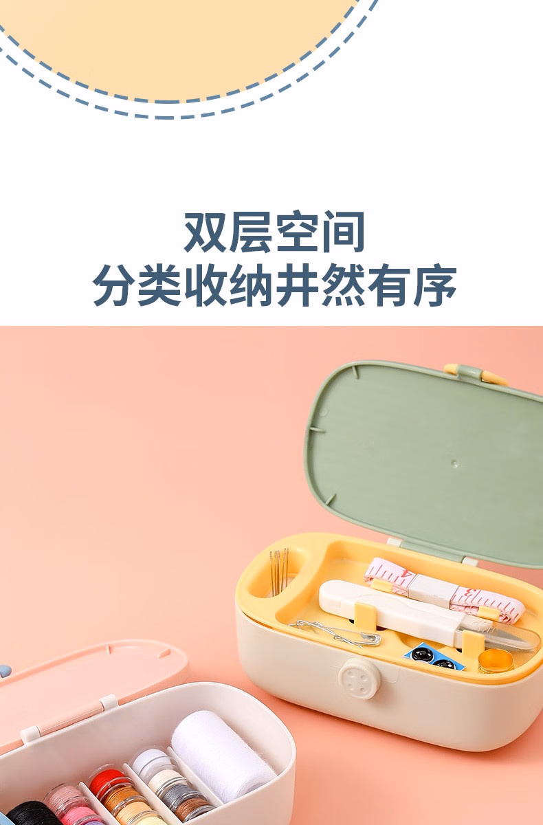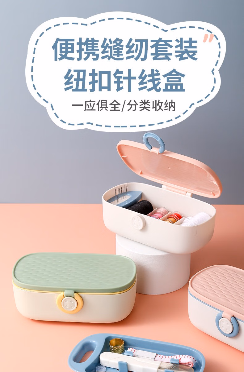 亿拉福针线盒套装家用多功能手工收纳针线包缝衣针便携缝纫包缝补衣服皮革旅游用品缝补工具绣花针手缝针 【26件套】轻奢粉