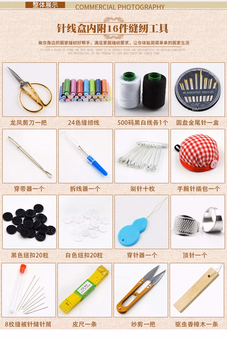 针线盒套装家用缝纫用品多功能小针线包阵线大号便携收纳盒子包邮复古蒲公英【26色线】工具套装