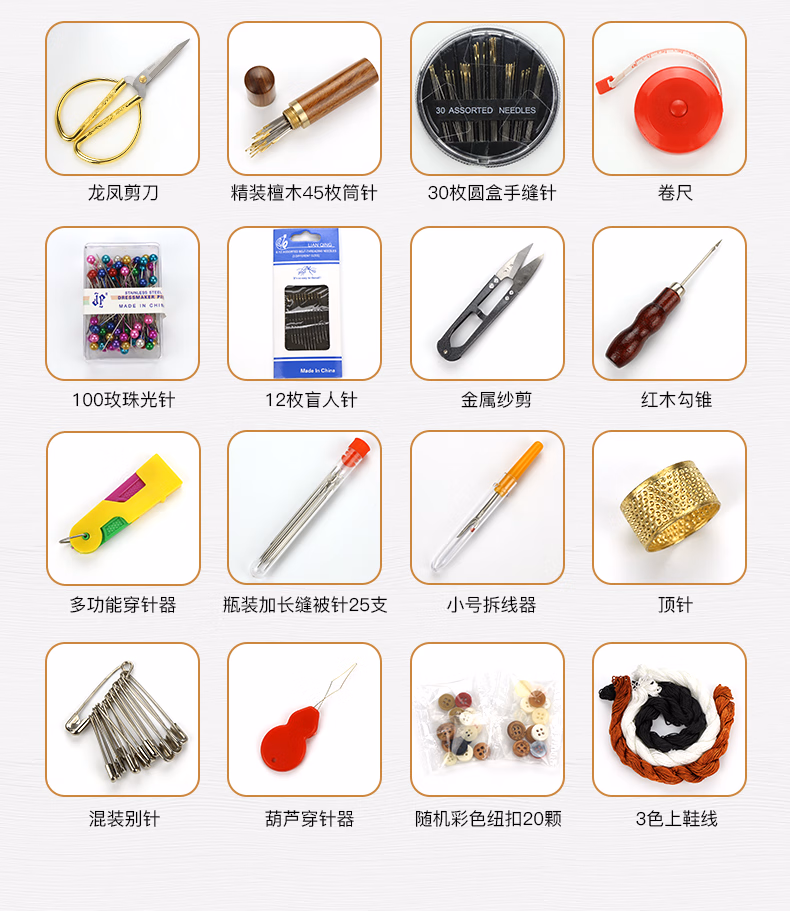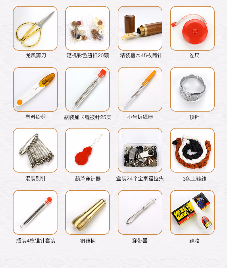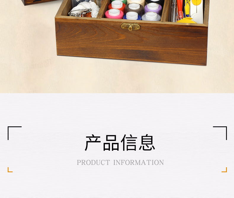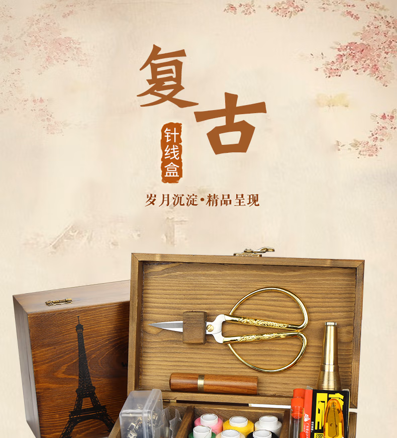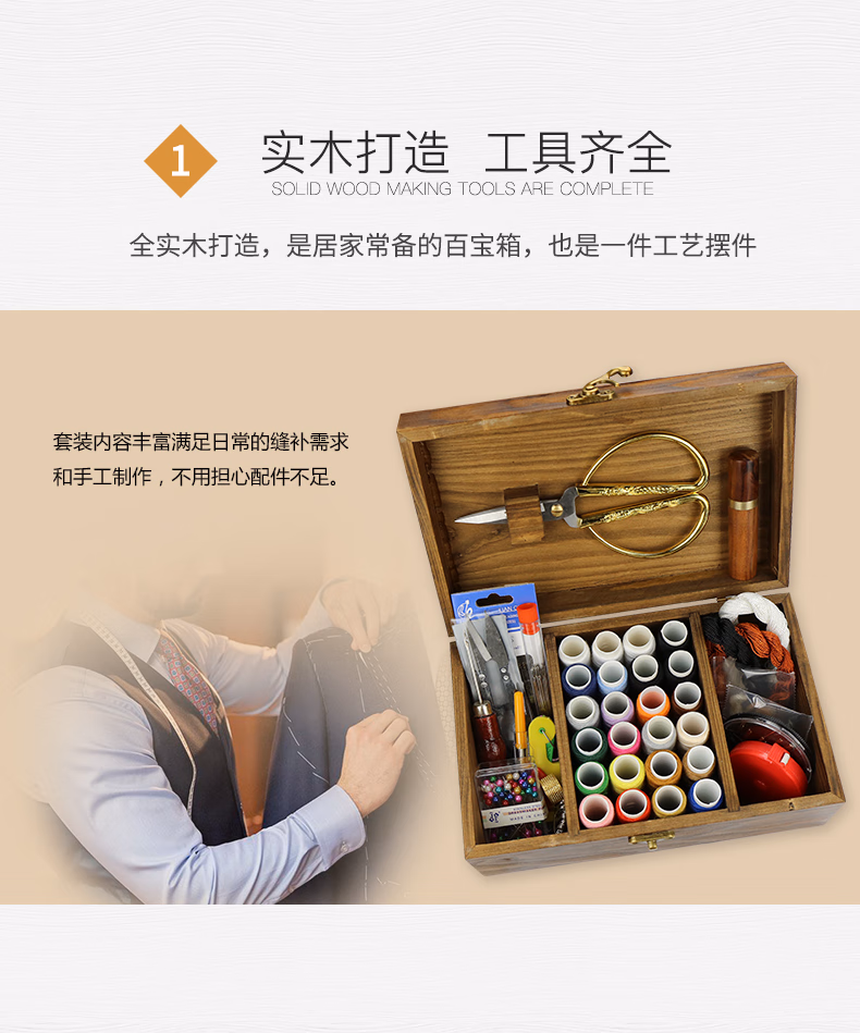 复古家用针线盒套装高档婚嫁手工缝衣服修补工具缝纫便携包线盒木制针线盒【全能装】(套装二) 24色线