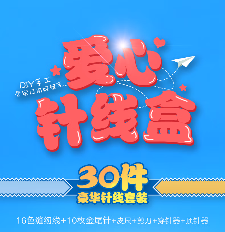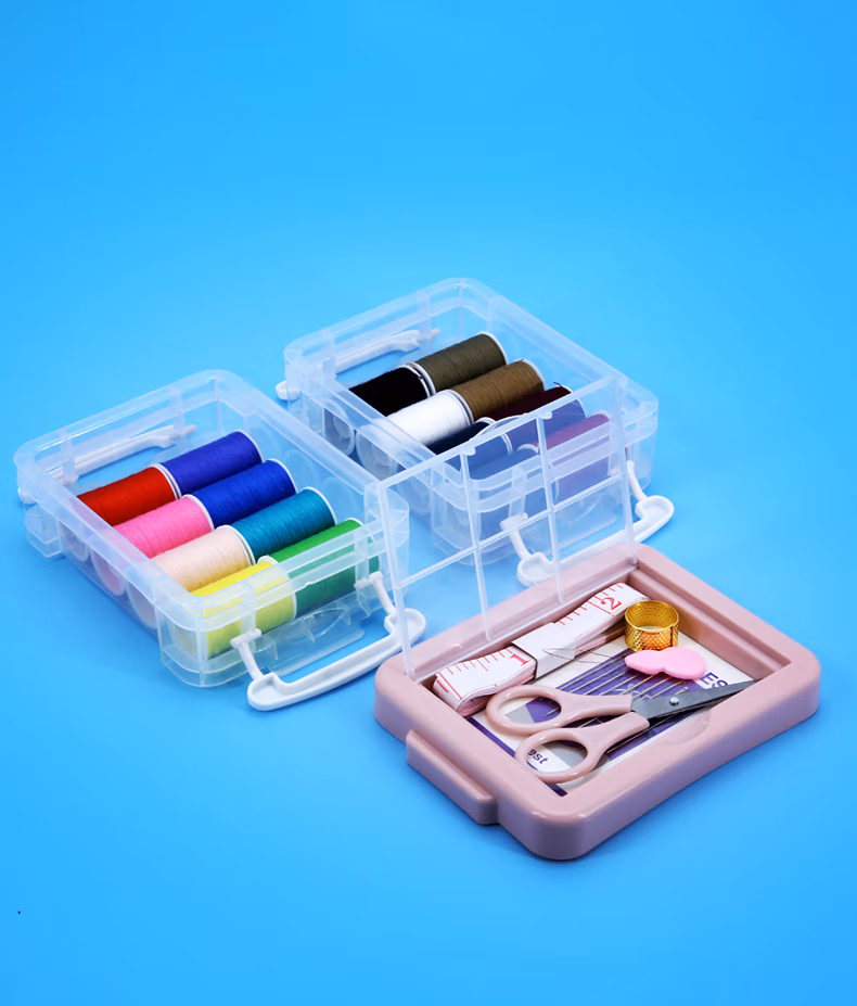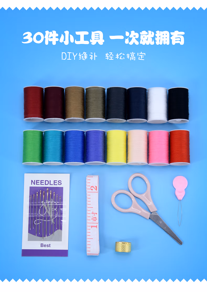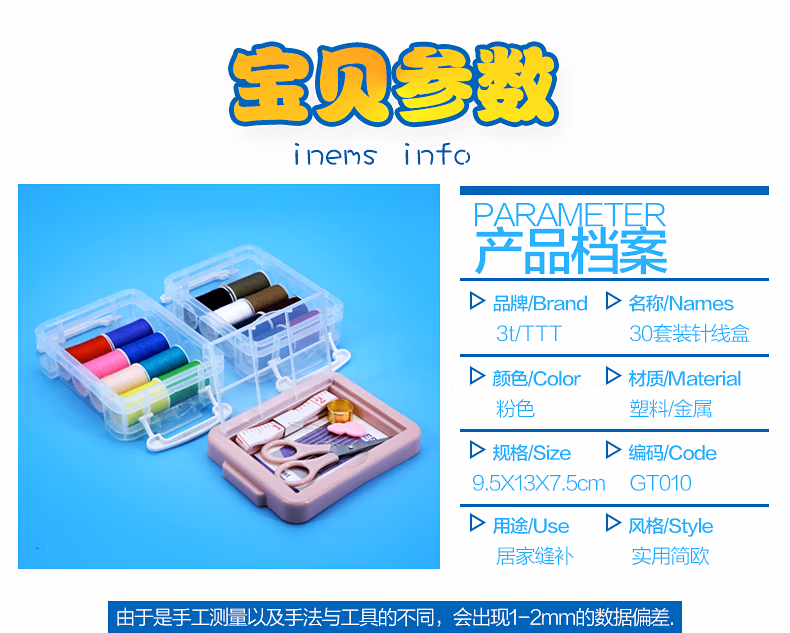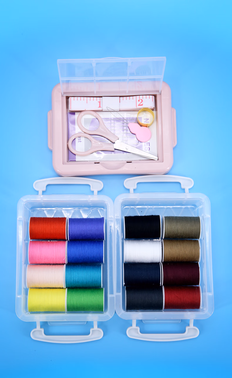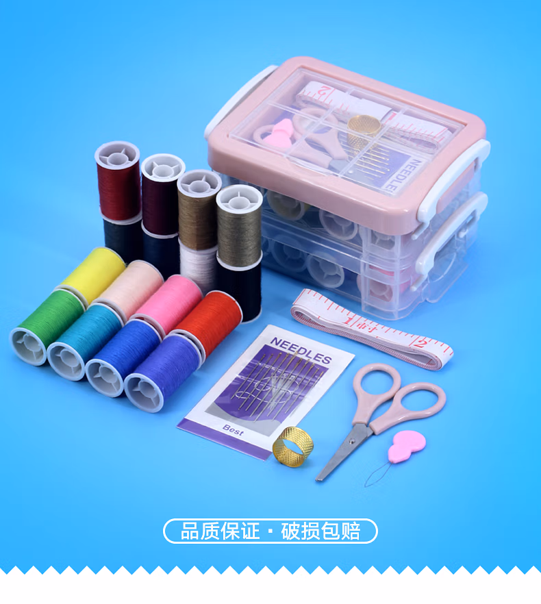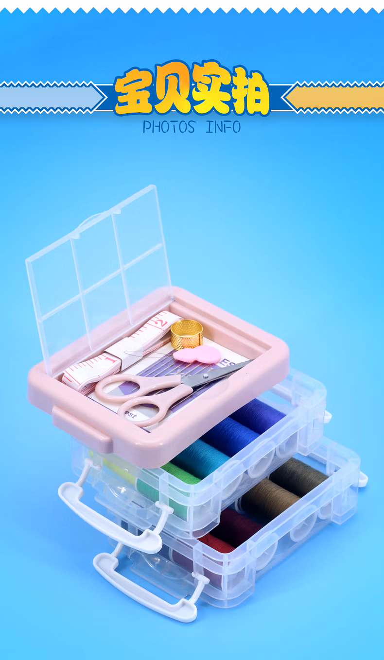 TTTDIY手工小型针线盒套装便携式衣物缝补针线包顶针家用缝纫手缝针粉色三层针线盒
