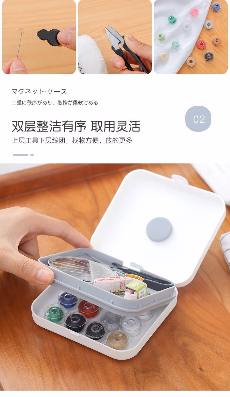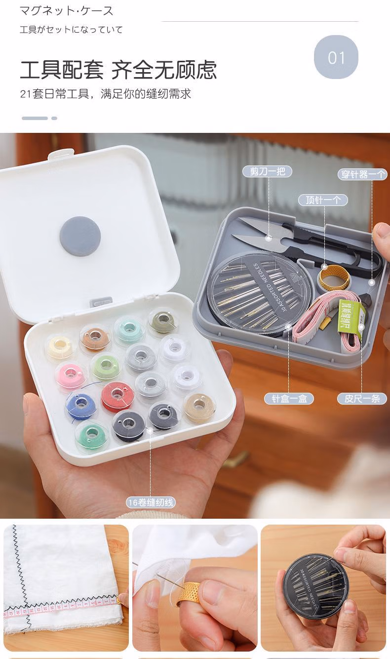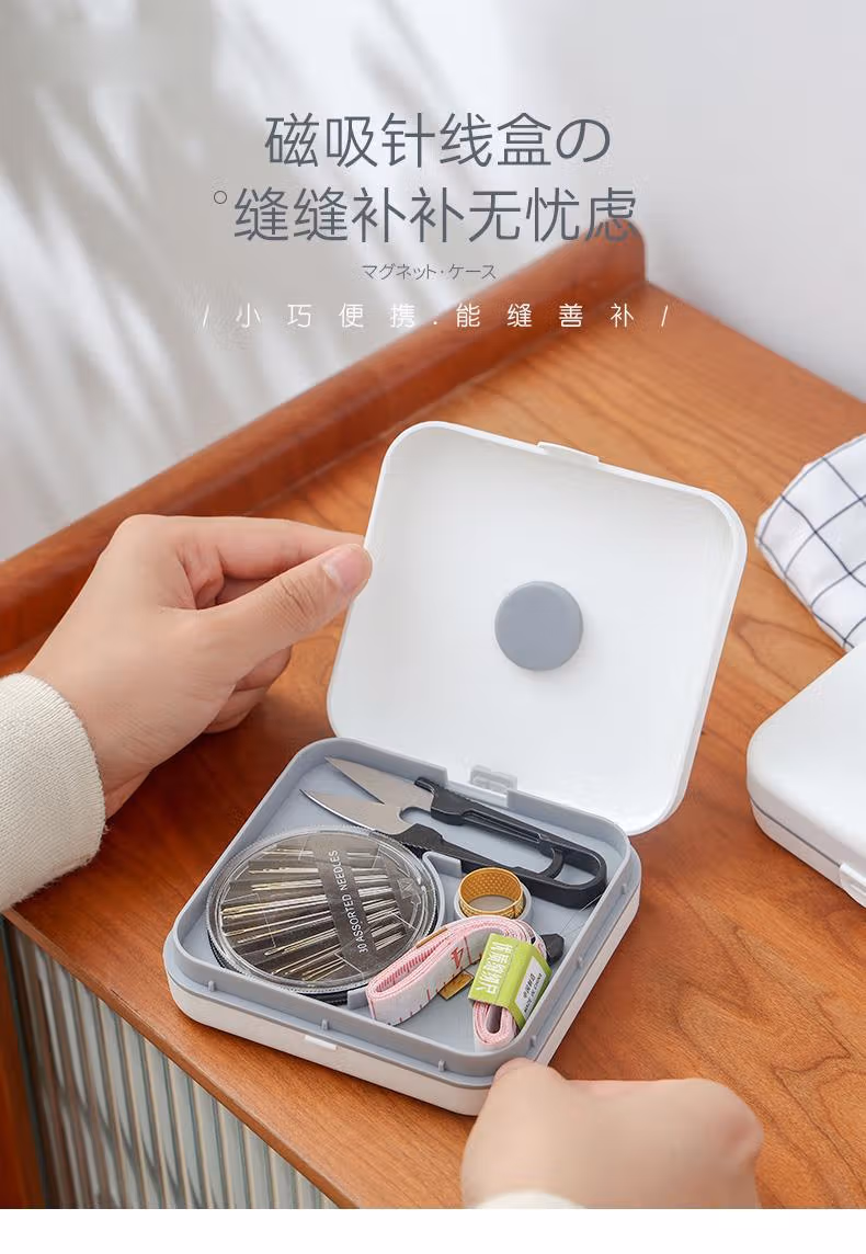 SP磁吸针线盒套装家用多功能高档针线包学生宿舍小型手缝纫工具1白色