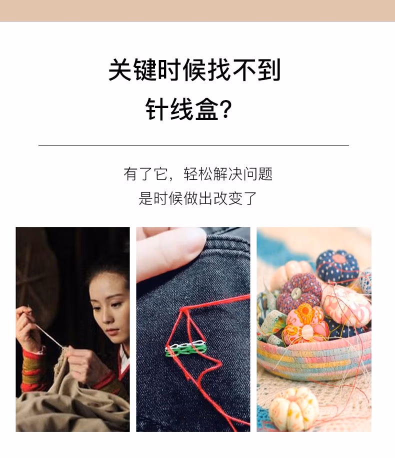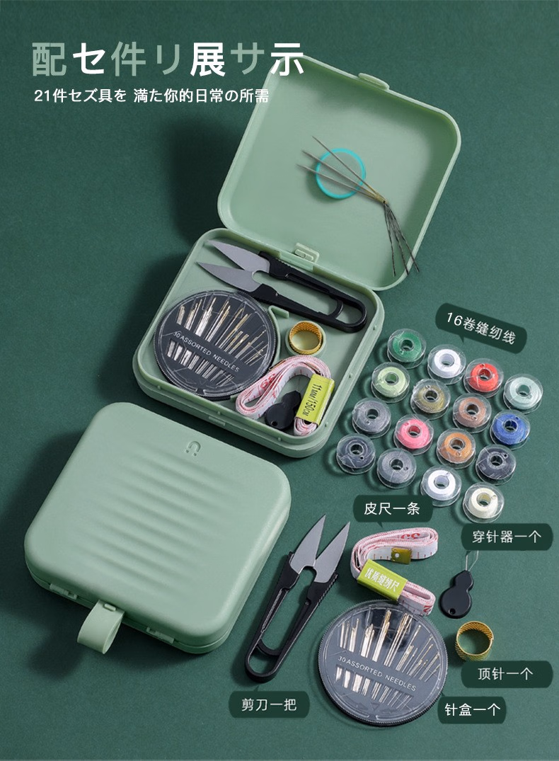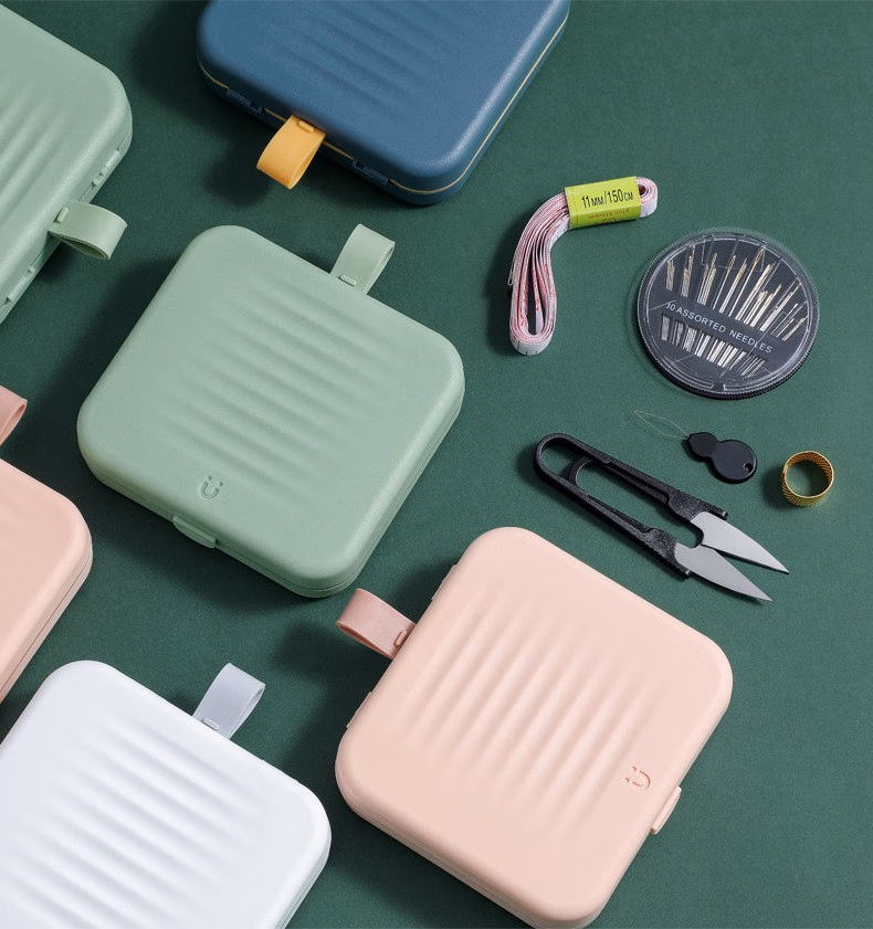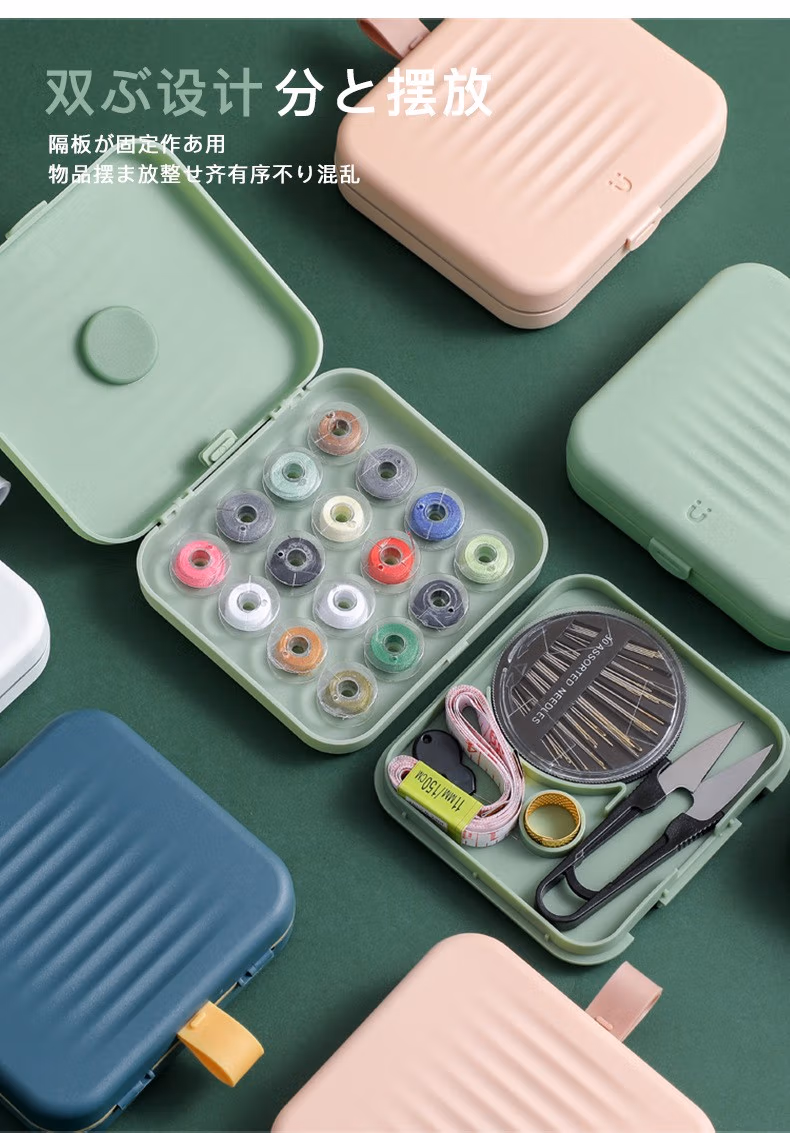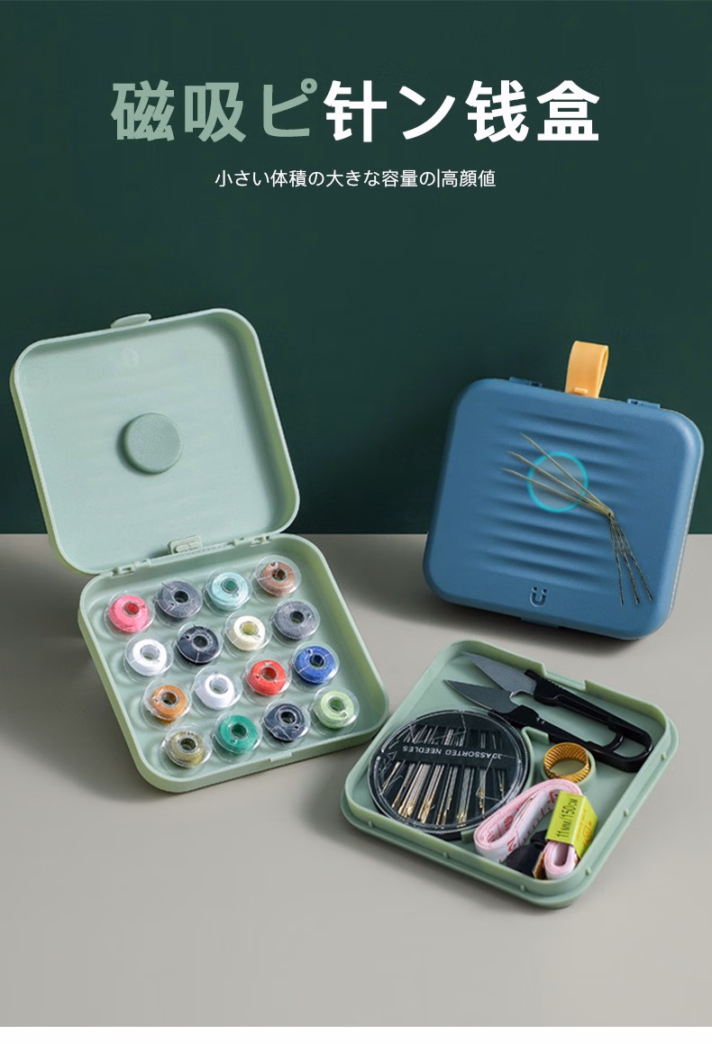 QUEENJOY磁吸针线盒套装家用便携式缝纫针线手缝针小型女学生宿舍多功能针线包 少女粉磁吸针线盒【带工具】