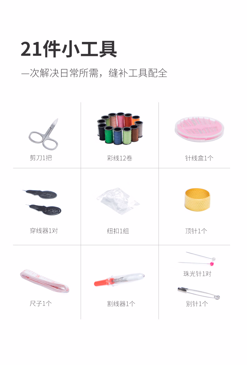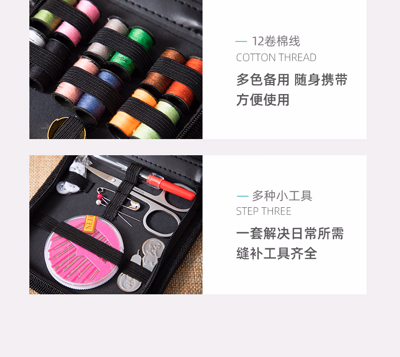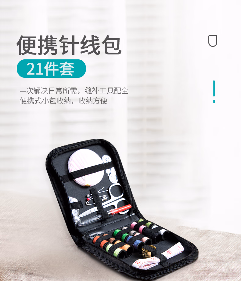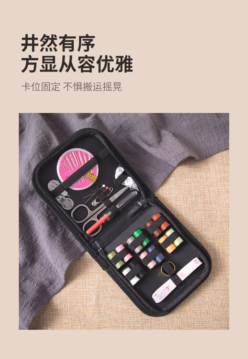 香柚小镇 针线包套装迷你多功能家用针线盒缝纫缝补工具齐全便携居家出差旅游用品 黑色