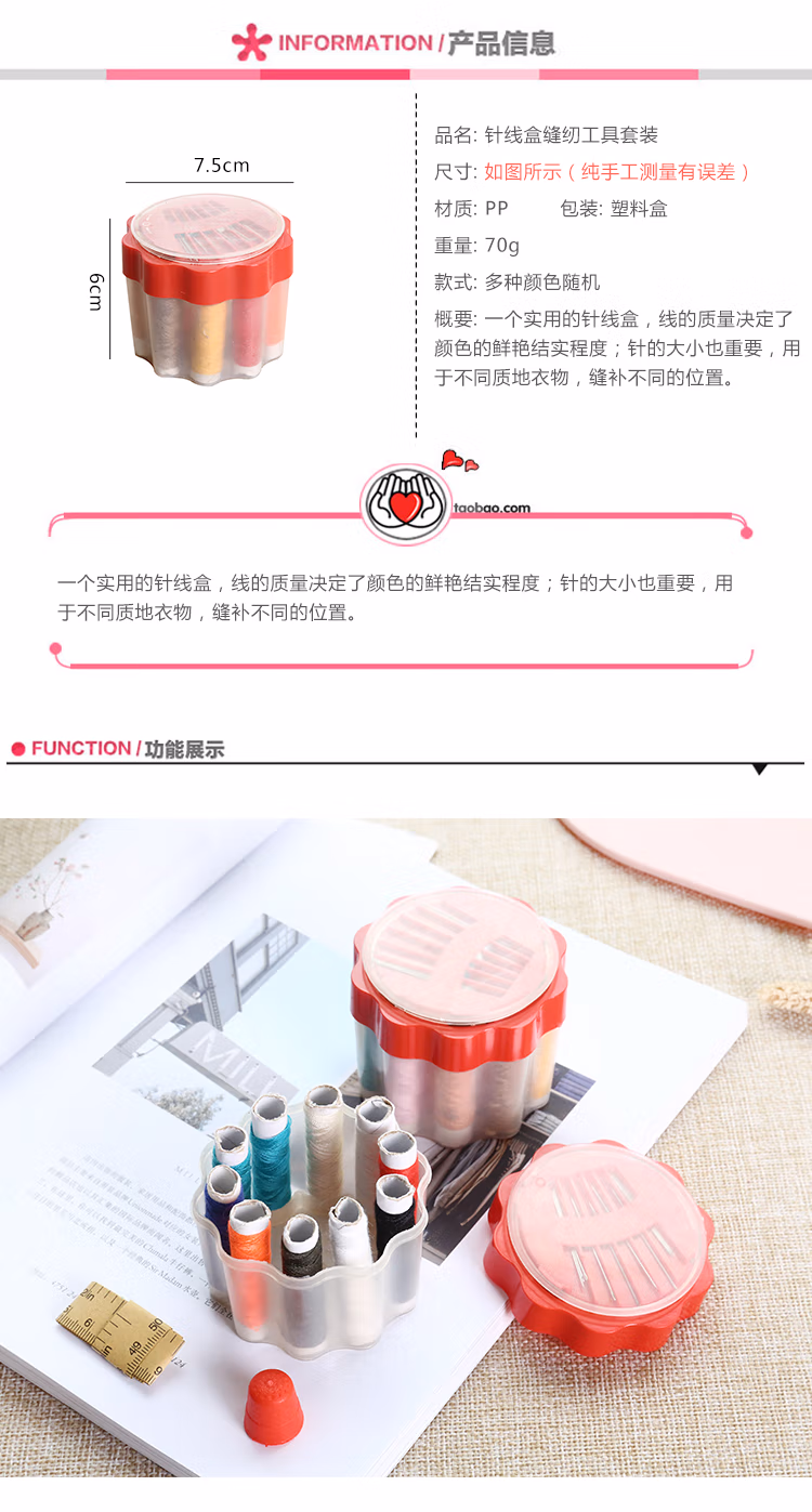 家用针线盒套装手缝便携式小型针线包女学生宿舍塑料线盒子2个装