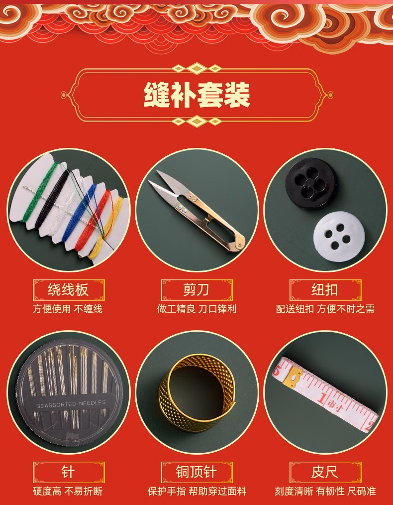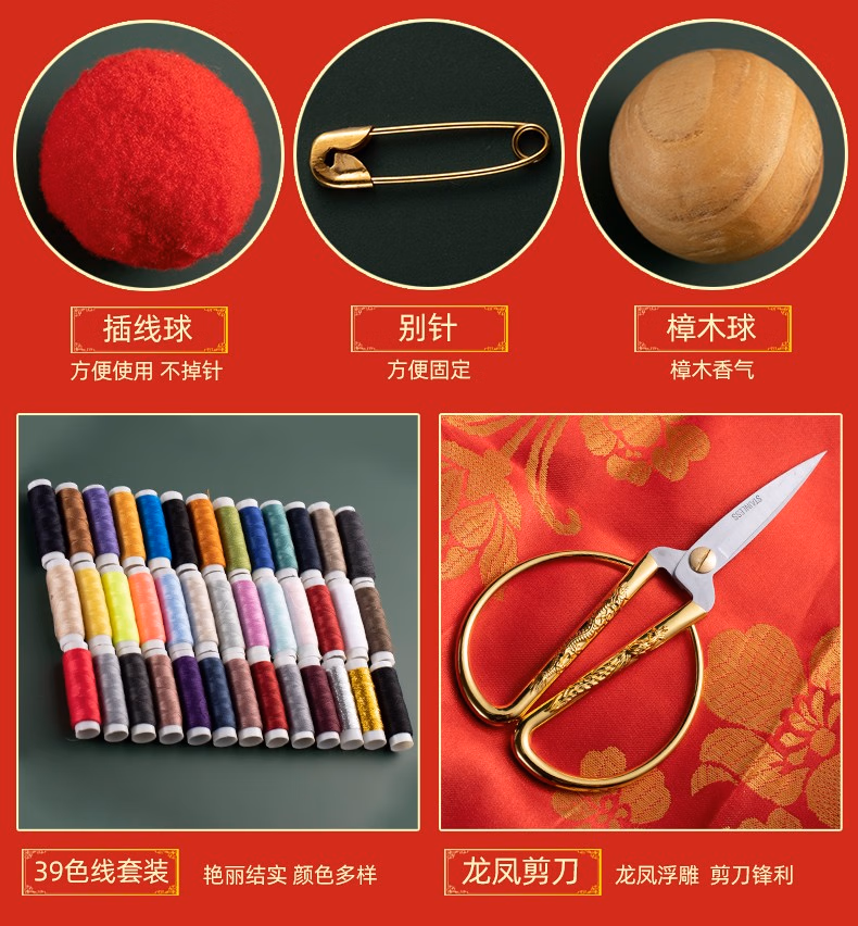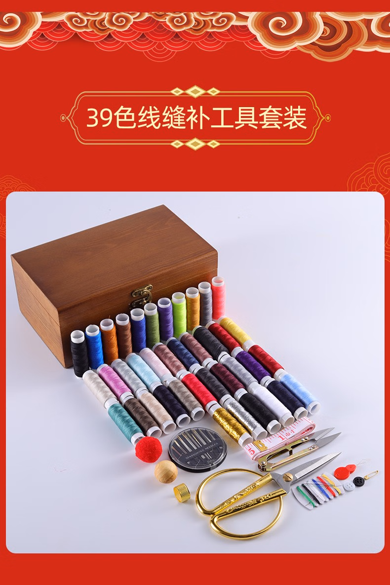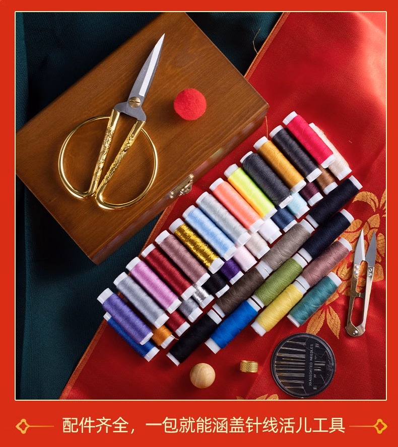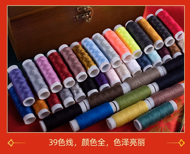 针线盒套装家用高档多功能便携复古大号高级手缝针线包阵线收纳盒39色线款 黑色防水袋针线套装(不含龙凤剪刀)