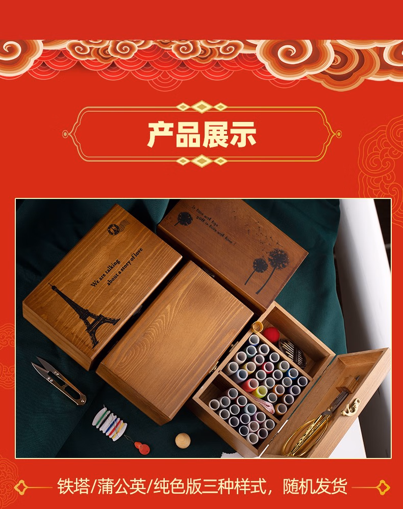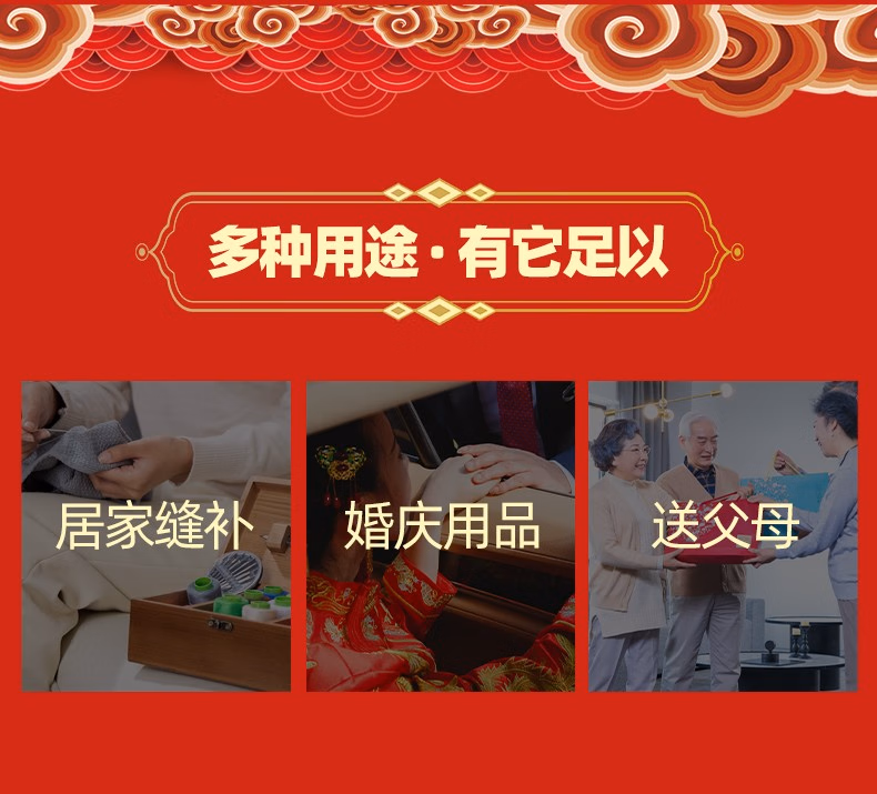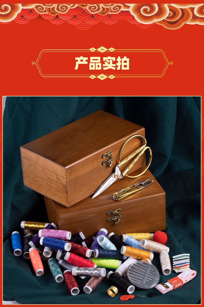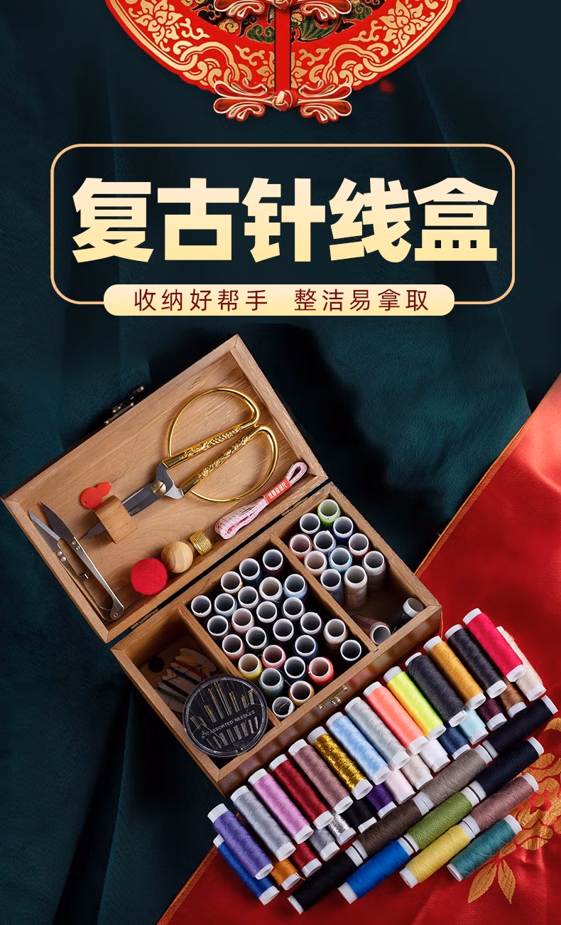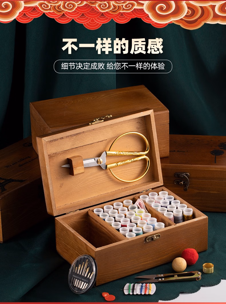 针线盒套装家用高档多功能便携复古大号高级手缝针线包阵线收纳盒39色线款 黑色防水袋针线套装(不含龙凤剪刀)