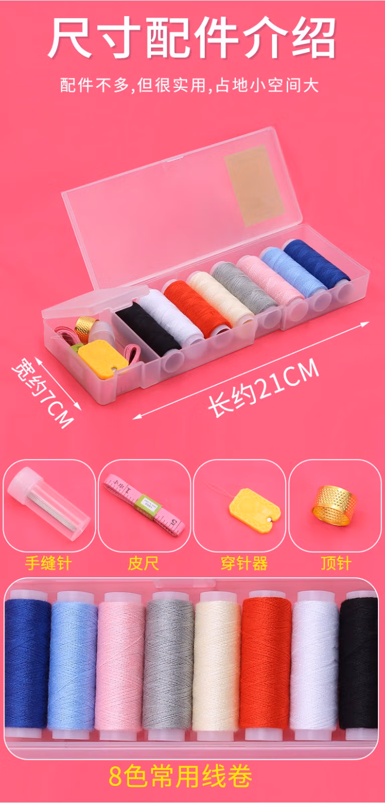 迷你便携小型家用针线盒套装学生宿舍缝纫用品手缝工具收纳针线包磨砂白