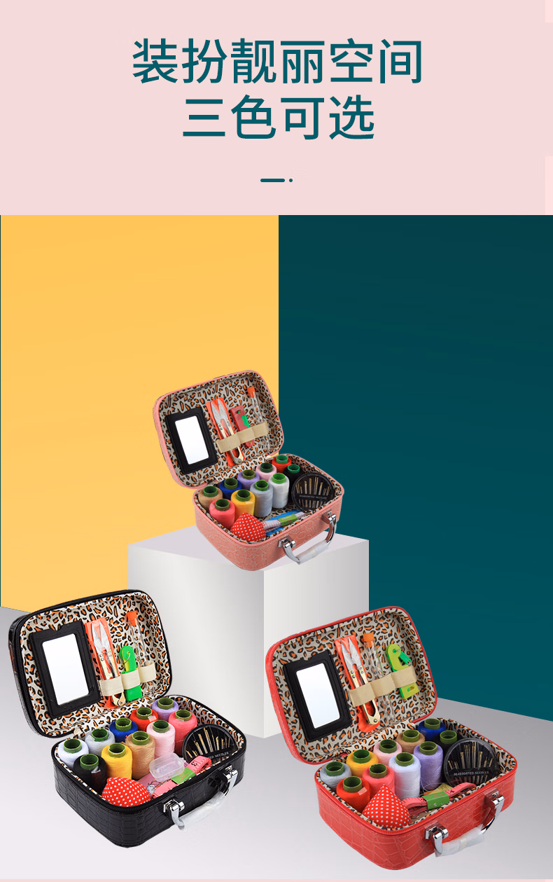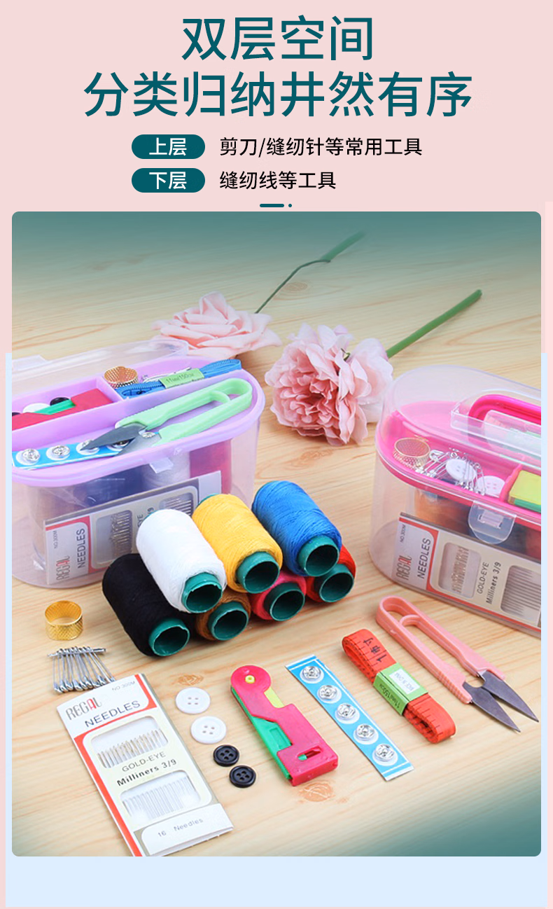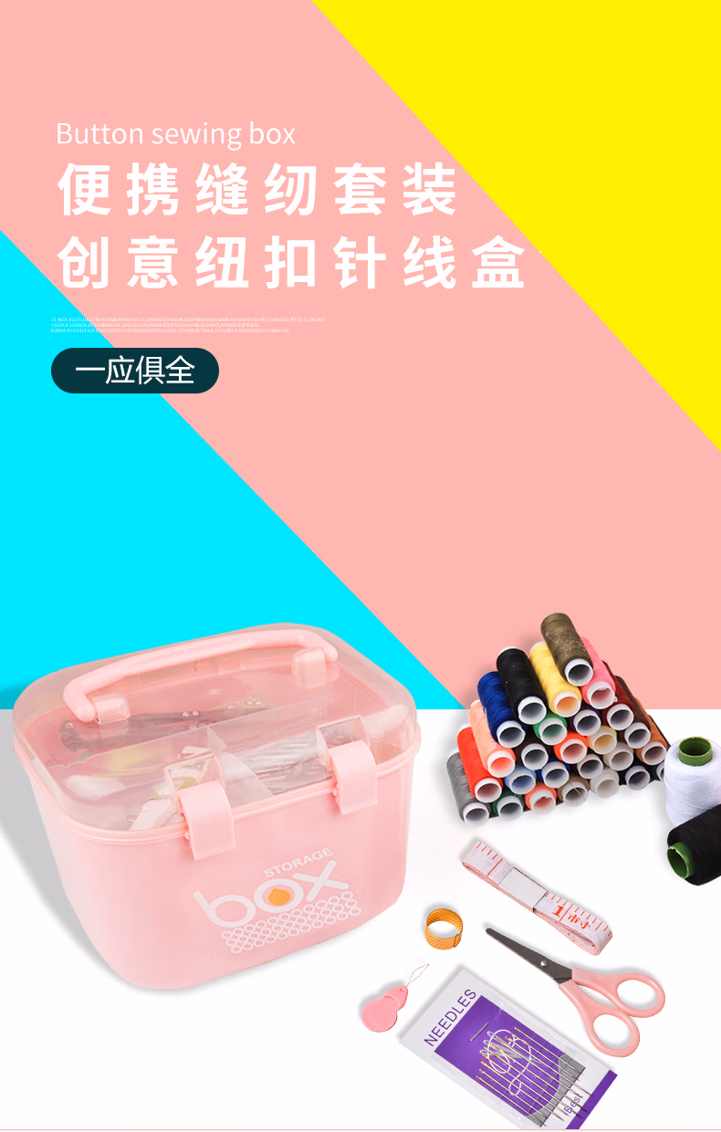 家用针线盒套装便携式多工能小型针线缝补包手缝学生宿舍缝衣盒子5卷黑线 黄板针1包