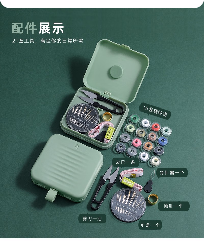 家用针线盒小型便携多功能收纳盒高档针线包手缝针线套装工具配件蓝色-【破损包赔】
